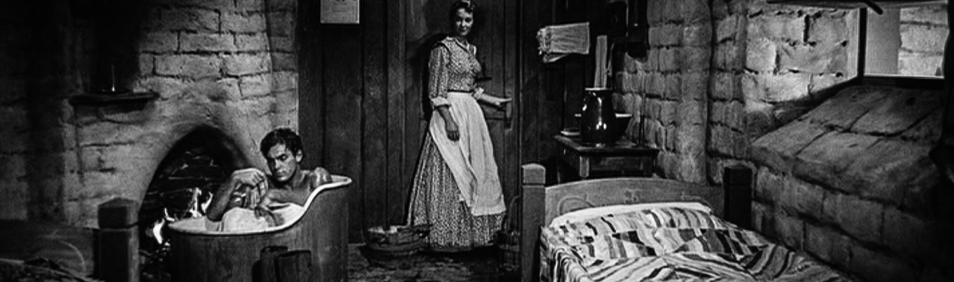 It comes down to exactly that. Ethan and Marty track Scar to New Mexico, sitting in his tent, looking at some of the scalps he’s collected, “agreeing” to meet tomorrow when both Ethan and Scar recognize that it’s really a plan to kill the former. Debbie is there, fourteen years old, dressed as the Comanche women dress. She leaves the tent, searches for her father and her adopted brother, tries to tell them that Scar will be along soon with his men to kill them. Marty goes to her, tries to convince her to run off with them. And then Ethan pulls out his revolver. Even after ninety-plus minutes of plot in which Ethan’s madness is exposed, it’s a shock when Marty has to stand in front of Debbie (Natalie Wood, because girls born of Russian parents can be Native American and Hispanic), completely blocking her. The shot is framed beautifully, because you can’t even see Natalie Wood behind Jeffrey Hunter, and you know that if Ethan thought there were even a small window to shoot through, he would do it. To ensure that his daughter stays white – to ensure that she isn’t part of any sex, even if it might be consensual – to ensure that she is not Other – he is willing to shoot her down after spending five years of his life looking for her. This is the consummation devoutly to be wish’d.