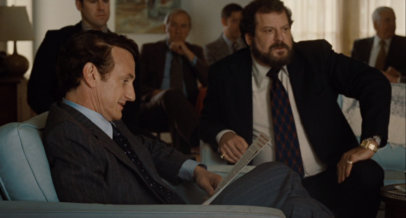 Harvey Milk (Penn) is a late-blooming political dynamo. At age forty (Harvey’s birthdays are used to mark the passage of time), he’s still working for an insurance company. He picks up a guy named Scott Smith (James Franco, probably in my favorite role of his) in the subway. As the day changes, Harvey sighs and leans back against the wall. He’s forty, and he hasn’t done a thing that he’s proud of.
