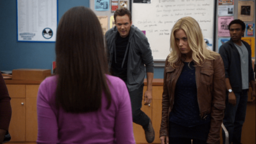 The conclusion, sort of like Community’s own conclusion, is a bit of a bummer. The group decides that a ghost must have taken the pen and, in the end, can walk out as trusting friends leaving behind an utterly trashed study room, sacrificing their location for one another. My opinion on the matter is that if we can fete Breaking Bad for writing itself out of corners with impunity, then we can certainly offer the same courtesy to an episode which, for twenty minutes, ranks with the very best single sitcom episodes ever to air on the small screen.