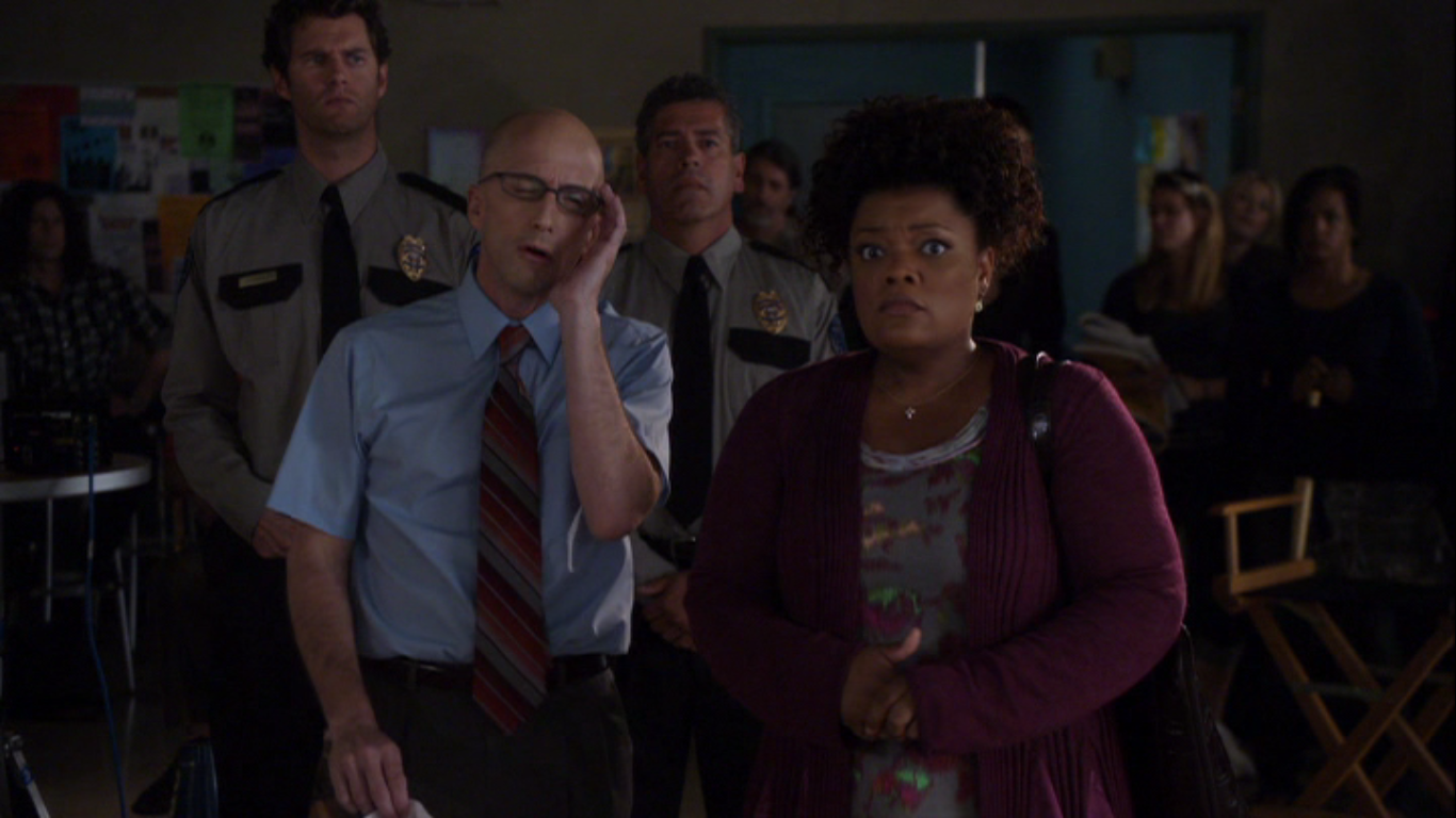 In another episode that needs to take most of its time to wrap up a season-long plot arc, Shirley’s baby is born in the lecture hall where they’ve been taking Anthropology 101, and it’s determined that the child is not Chang’s, after all, even though it seemed more than likely that Chang would end up being the father. It’d be easy to say that Community has an issue with making plot-based episodes, as opposed to Theme Week episodes, come together, but one thinks about how often plot arcs close neatly in comedies, and one is inclined to give Community a little more of a chance. It’s the end of a season for Shirley that has not been terribly flattering; she spent most of the second season being pregnant and on the edge of truculence more often than not. Even here, when she’s giving birth, she’s better as a way to get Chang to rattle off the terrible ways that “Chang babies” have been born than she is as a character. Heck, Malcolm-Jamal Warner probably gets as many good one-liners as Yvette Nicole Brown over the course of the season. What’s enjoyable in this episode is Peak Space Britta, topped off by the 2001 style moment in which we learn that yes, the baby’s head has reached the cervix. Her catchphrase (“duh-doi!”) is made use of frequently. Britta is equated with everyone else’s catchphrase (“You’re the worst!”) but we’ve also spent a lot of time noting over the course of the season that Britta’s desire to help others is self-destructive. It comes to a head, quite literally, and we can tease Britta’s need to be praised for doing the right thing while simultaneously appreciating that she really does have her heart in the right place.