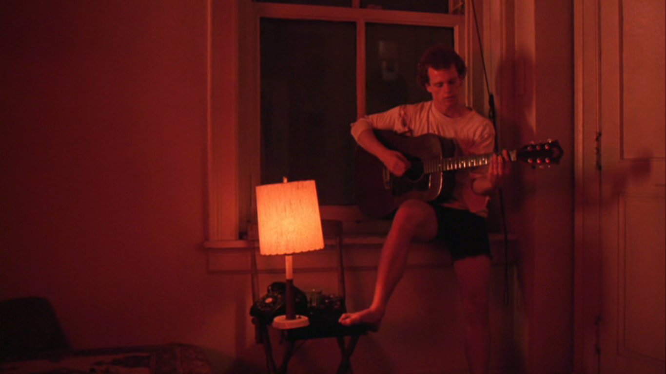 Similarly intimate is an extremely short song, written and performed by Paul McCrane, called “Is It Okay if I Call You Mine?” (The link is an album version; the movie version lasts about a minute and a half.) After having lost Doris, his best friend, to Ralph, his onetime bully turned friend, Montgomery finds himself alone in his apartment, abandoned by his famous mother and his best friends. Lit by the flashing neon sign of a hardware, Montgomery picks out a song which is even more about loneliness than “Out Here on My Own,” and although it could never have made it on the radio, it’s the kind of song that would have played perfectly on the B-side of a Simon and Garfunkel record. It’s the most touching moment that Montgomery has, one that humanizes his struggle far more than his monologues or his talks with Doris over half a sandwich or his embarrassing encounter with Ralph in a stage makeup session; it makes him a person.