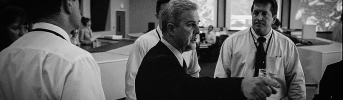Much of the early action in the film follows Ben Sliney (playing himself), who had been the FAA National Operations officer for all of about fifteen minutes before flight controllers begin to deduce that hijackings are taking place on different planes across the Northeast. Flight controllers in Boston are tracking American Airlines 11, which does not respond to repeated hails, until it suddenly disappears over Manhattan. The flight controllers are confused – where could the plane have gone? In that moment, a viewer’s heart sinks, because s/he knows exactly where that plane is: it’s in and around the North Tower of the World Trade Center. Not long after, people can see the massive plume of smoke rising into the sky from the North Tower; CNN gets cameras on the building, and the reports of a prop plane smashing into the tower suddenly seem ludicrous. People begin to piece the situation together at the FAA, begin to understand that jetliner has collided with the building. Later on, a second plane coming out of the sky – Greengrass allows us to see United 175 coming, ghostlike, and, as it did on television with so many people watching, explode into the South Tower. The sobering effect that the World Trade Center has on the FAA is mirrored in NORAD when it’s shown that a plane has crashed into the Pentagon; a room that had previously been full of chatter and action, of resolve and, frankly, the only hope for ending the crisis, goes silent. The commander in the back room can only get a few planes in the air; I can’t protect the entire eastern seaboard with those, he protests to whichever higher-up he’s got on the phone. What are the rules of engagement? he asks. Yes, he understands it’s a commercial flight with Americans onboard. Does he need the Secretary of Defense’s permission? The Vice-President? It turns out he needs presidential approval for his jets to engage the passenger planes; the film never says it, but around the time this officer must have been calling for orders, George Bush was in a Florida classroom reading a book to children. (At this point I was trying desperately not to remember that tidbit, but Michael Moore has burned it in my brain forever.) The helpless flight controllers, Sliney’s confusion, the officer’s frustration are our proxy for the total chaos which reigned before noon on September 11th. As viewers, we can’t help but slip back into our omniscient perspective, wanting to scream at the people – not vituperatively but vehemently – that something so far beyond their imagination is going on. When Sliney calls for all planes to be grounded (which, as one of his employees says, awestruck, will result in billion dollar losses), he is unshakable. No more crashes into buildings, he says. There are more than 4,000 planes in the air; they come down now, with absolutely no more planes entering American airspace. Once or twice we have seen the boards which show, in an eerie neon green, the moving blotches symbolizing aircraft. In those moments, we see the situation from the perspective of the air traffic controllers. In the years to come, we will accept that four planes were hijacked. In the moment, the existential horror of not knowing which of those 4,000 planes could be a cruise missile is utterly overwhelming.