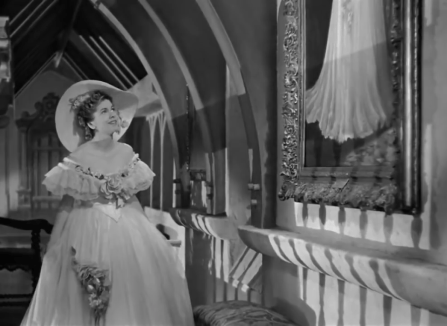 Rebecca must be one of the great depictions of anxiety ever to appear on the big screen. Where some people dream of performing a role they haven’t practiced in front of a capacity crowd, or having an exam placed in front of them on a subject they’ve never studied, poor Joan Fontaine as 2 Mrs. 2 de Winter must, in her waking hours, be the mistress of a great British manor and the wife of its temperamental, standoffish, mysterious master (Olivier). Without any experience or breeding, with nothing to recommend her but the ameliorating beauty and mostly silent company she gave Maxim on his drives around Monte Carlo, she has been launched into a situation for which she has no answers. The language of Manderley is as foreign to her as if it were in Urdu or Magyar, and so she is easily dominated by the expectations she presumes her husband has but also by the clear expectations that the housekeeper, Mrs. Danvers (Anderson) absolutely has. Little by little she falls into traps that weren’t even traps to begin with. A beautiful ornament is smashed and hidden in a desk drawer. She answers the phone in Maxim’s house and says, “I’m sorry, Mrs. de Winter has been dead for over a year.” The dog Jasper runs down to the beach and, against Maxim’s protests and condemnations, the second Mrs. de Winter (as Fontaine’s character is known) follows him. A costume party begins in agony as she chooses an original one based on a portrait on the walls which was never of a “favorite aunt” at all. And so on and so forth, until Mrs. Danvers very nearly convinces her despairing new boss to jump from an upper-story window. Rebecca is a ghost story without a ghost, a horror movie without horror. Absence is parlayed into nervousness, and over the course of ninety minutes sustained nervousness can be strongly affective. In the boathouse, for example, endless and relentless talk of Rebecca creates a jolt when we see her moving for the first time. It’s not her, of course; it’s Maxim’s memory of her, with the camera moving to show us where she was moving once, but it’s utterly brilliant all the same. She’s not real enough any more to be corporeal but she’s very much real enough to be the wispy solid of memory. The second Mrs. de Winter mentions in Monte Carlo that she’d like to be able to bottle up memories like perfumes, whose scents are material but invisible. The perfume – the reek – of Rebecca hangs over the whole of Manderley, and it seems no other aroma can rid the house of it.