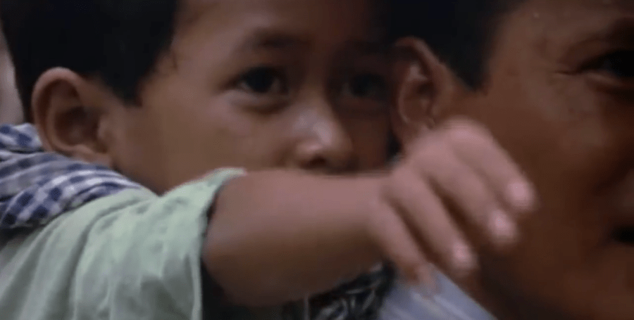 The film also shies away from a saccharine human spirit tone by choosing to break the viewer’s heart and move on, over and over again. No death is played for sentiment in the film, and no one cries out with loss. This is not Schindler’s List. Towards the end of the film, aided by a secret cache of twenty-dollar bills and a contour map, Pran and a companion and the young son of a former employer are nearing Thailand. The other man steps on a land mine while carrying the little boy, who can’t be older than four or five, on his back. Pran tries to get the man to give him the boy; the boy, who recognizes Pran as a father, sensing the danger, reaches his arms out to Pran; the man and the little boy go up in smoke. We see Pran carrying the boy’s bloody, lifeless body in the next shot. Shortly afterwards, Pran cremates the corpse. And then we move on. There’s no music to swell here, or even very many tears. It is stark filmmaking which wrenches and guts and does not linger. Pran has faced too many horrors to linger on all of them, and with Joffe’s moving camera we were there for them as well. (The only exception is one which proves a supposition I’ve had or a while that a bad ending can sabotage an otherwise great movie; is there any reason “Imagine” was in this movie at all, other than to ruin the picture?)