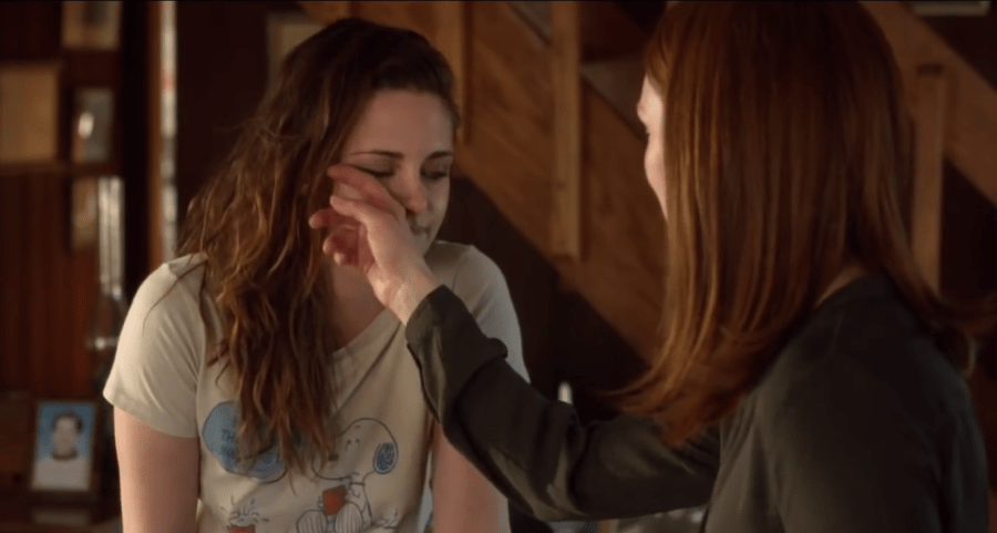After the initial interest of Alice’s diagnosis, the film seems incapable of drawing itself out of the cliches of the genre; one can hear the filmmakers giving their pitch, telling some producer that “On the surface it’s about a woman with Alzheimer’s, but really it’s about a daughter reconnecting with her mother.” Alice reads a speech to an assembled gathering of people with Alzheimer’s, neurologists, and sympathetic figures. It’s significantly changed from her original draft – she has taken her “wayward” daughter Lydia’s (Stewart) advice and made it more personal rather than scientific. The speech is about what it’s like to have Alzheimer’s, but it casts its line into waters which have already been fished heavily. Moore does her best with it, which is no small thing, but it’s a speech which falls back on the cliches of “I’m struggling, not suffering” with shots of nameless audience members, never seen before and never seen again, reacting to Alice’s courage like cheerleaders with “CLAP!” or “MAKE SOME NOISE!” signs. A film should be able to make us feel without reminding us that we’re supposed to feel, and though much of its plot is tired, that doesn’t mean Still Alice couldn’t be effective. The relationship between Lydia and Alice is gift-wrapped from the beginning – from their first fight, we know Alice’s illness will bring them together – and at the end, Lydia puts her nascent acting career on hold to care for her sick mother. Before that, Lydia had Skyped with her mom, asked her directly what how it felt to be sick without sugarcoating it. She is the one in her family who cares the most, and Stewart plays the role well. There’s just not a whole lot for her to do. She connects to her mother through plays. She performs in The Three Sisters, reads Harper’s ozone monologue from Angels in America in the film’s last scene. (Glatzer and Westmoreland, in abdicating the majority of their final scene to Tony Kushner, prove pretty resolutely that they have very little of their own to say.) Ironically, Alice connects to Lydia best through her private journal, reading that when it’s in the same pile as a bunch of the plays in Lydia’s bedroom. Moore has to play a bunch of “this is how we know it’s Alzheimer’s” scenes in the film: she forgets words and phrases, she introduces herself to someone she already introduced herself to, she can’t find a bathroom and pees on herself, she doesn’t recognize Lydia backstage. (One scene ends with a huffy “I can’t remember the word,” which, well, duh.) This incident was one of two I hadn’t thought of, witnessed, heard about, or encountered before in some medium, and unsurprisingly it’s the among best of the bunch. Lydia uses this as a pivot point for her mother; at first she is deeply hurt, and then later on she recognizes in this moment the gravity of her mother’s illness. Whatever differences they have, the old Alice would not invade her grown daughter’s privacy like that. And so it is that Lydia seems better equipped than her perfect sister, Anna (Kate Bosworth, whose life’s work, sadly will be to play people who are as perfect as she looks) to deal with their mom’s trouble.