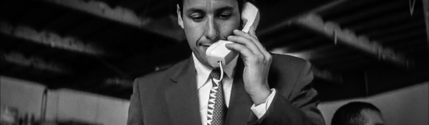 “This is Barry,” Barry (Sandler) says whenever he picks up the phone. It’s one of those friendly touches one adds to whatever entrepreneurs call bedside manner – “Yes, ma’am, there is a real live human on the other end of this line!” – and it’s also like a mantra. Barry is hard to pin down. He’s a person who is mealy-mouthed and sober when he comes to a party with his seven sisters and their families, destroys a sliding glass door most of the way through the party after being ragged about having broken a door with a hammer as a kid, and then cries to his brother-in-law about his feelings. You’re a doctor, Barry says, clearly reaching out for help. I’m a dentist, his brother-in-law replies. It’s the kind of swing which is typical for him. In his best moments, or at least his normal ones, Barry really does appear to be a more or less even-keeled human being. He’s calm at work, even when he has accidentally obliterated a plunger he’s trying to sell on the promise that its handle is unbreakable. (“This is embarrassing.”) But he is angered by people who seem to need the get the better of him, as his sisters inevitably do, and that pressure valve always breaks and he breaks with it. In those even-keeled moments, he’s still deeply strange; he wears the same blue suit all the time, goes into the road to rescue a harmonium, and has an eye for frequent flyer mile codes on pudding cups, stocking hundreds of them outside his office. The idea of getting a beer with him is repulsive. At his deepest levels, and even at some surface ones, he is a genuinely nice guy.