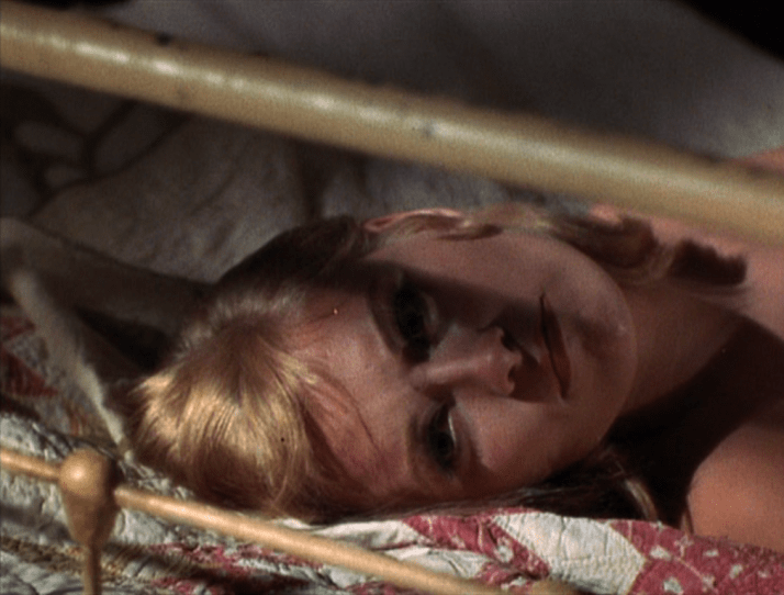 Bonnie and Clyde is frequently credited as helping to bring violence to the American movie theater, which is certainly true. The way Bonnie and Clyde die is tame forty years later, but it was strong medicine when it premiered. Yet to me, Bonnie and Clyde has significantly more to do with sex than it does violence anyway, even if that’s not the way history reads the film. Just as Romeo has to unleash his pent-up aggression on Tybalt, so too does Clyde rely on guns as a way to get it up. The movie is sexually frank; it begins with Bonnie, pouting and banging on the bars of her bed, rolling around and pacing stark naked in her room. (Penn’s camera is reserved but not shy around Dunaway as she goes to her window and shouts down to Clyde, who’s in the act of trying to steal her mother’s car.) Clyde has no such scene for himself. Bonnie ultimately succeeds in getting him to use his God-given instruments instead of the steel implements he’d favored previously, but it’s a near thing; towards the beginning of the film he rebuffs her when he clearly knows what’s on her mind. He’s worried after the fact that it wasn’t good for her. She comforts him; it feels just like it should, she coos. Yeah, he says, chuckling to himself and stammering as he finishes buttoning up his shirt, trying to justify that he asked at all. But she stops him.