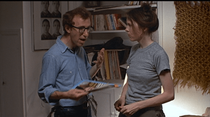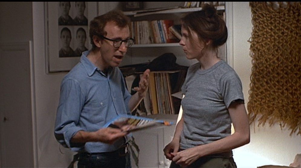 What I appreciate most about Annie Hall, even more than a main character we hope will be broken up with, is its structure. Don’t tell Christopher Nolan, but you can in fact allow a movie to unfold in an unconventional or nonlinear way without turning blue in the face calling attention to the cleverness of it. Annie Hall feels for an awfully long time like it’s a very special Woody Allen stand-up performance, what with that aforementioned scene where Allen pulls Marshall McLuhan out from behind a wall. (Imagine if people could actually pull McLuhan out into public places like that just on a whim. One of us wouldn’t make it.) Allen tells a few jokes which aren’t his originally, although they set a tone for the movie which is useful (“And such small portions!”). Wives from Alvy’s past appear and disappear, as do Alvy’s classmates and parents and teachers and roller coasters. Even individual scenes with Alvy and Annie together stand out with the kind of vividness given to vignettes, not chapters. The plot of their relationship seems unimportant compared to the small moments where lobsters roam, the Brooklyn Bridge gloams, and William F. Buckley is nearly subcontracted for arachnid extermination.