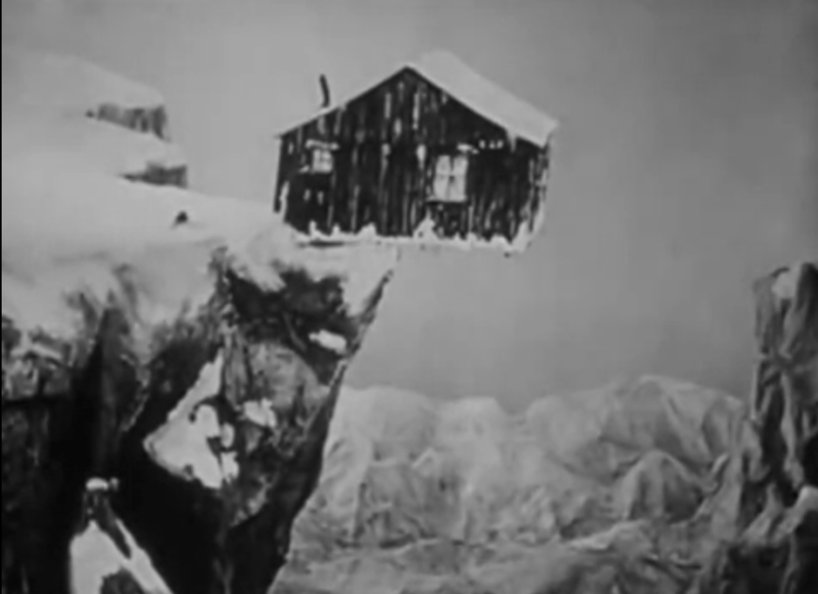 The Gold Rush is sometimes so funny I’m not sure it should be allowed. In 1972, Charlie Chaplin won an honorary Oscar; how many of the audience members were thinking about the sequence in The Gold Rush where Chaplin escapes being eaten by his hungry compatriot, who has begun to see the Lone Prospector as a giant chicken? There’s a special genius in the scene pictured above, where a storm has blown the Lone Prospector and Big Jim’s cabin onto the edge of a cliff; it takes an awfully long time for them to figure out why it is that the cabin keeps moving every time one of them goes the back door. And there’s a special genius in the simplicity of some of the movie’s other gags, which are so perfect that more than ninety years on they are fresh as ever. The Lone Prospector, dancing with a pretty girl, tries to hold up his pants with a rope he found; unfortunately there’s a wolfhound on the other end of the rope. In a struggle over a shotgun, Big Jim and Black Larsen inadvertently point the barrel at the Lone Prospector, who tries to move away from the barrel. Unfortunately, the barrel seems drawn to him like a moth to the flame; he makes something like three laps around the room, climbing on top of beds and crawling under a table.