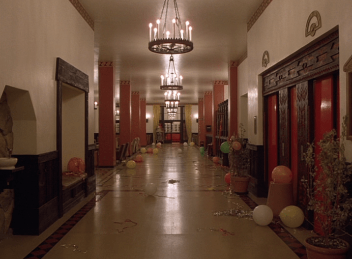 As much as any horror movie ever made, The Shining loves tracking shots. Either from behind a character, like Danny on his trike, or from in front of him, as we often see Jack ambling about, The Shining finds ways to follow people around. And then something happens: the twins appear in the hallway, alternately upright and hacked up. The hallway is filled with balloons; Wendy swings a baseball bat frantically and thoughtlessly. I can’t pretend to be a horror aficionado, but based on the ones I’ve seen I think the genre could stand a few more tracking shots. By their nature they build up tension and curiosity; it only makes sense that in a horror movie they would magnify fear. In any event, with an actor like Jack Nicholson in the fold, it’s a shame not to run the camera back as he walks towards it, twitching his arms and making quizzical expressions. Kubrick’s ability to play with new toys is maybe unmatched among movie directors. In Barry Lyndon, he uses that f./07 lens to distraction; in The Shining, the miracle of Steadicam makes many of the movie’s best moments possible. Kubrick’s not above a jump scare – what did you do the first time you saw Jack’s body frozen in broad daylight? – but the most memorable moments of the film often happen when someone’s on the move.