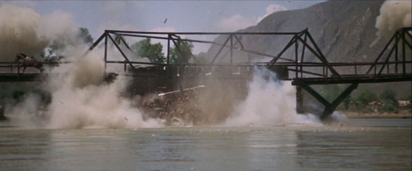 Recently, there’s been a trend to make movies with aging stars and maintain interest by pointing back to how old they are in their roles: The Bucket List, Red, Going in Style, The Best Exotic Marigold Hotel. The Wild Bunch includes several actors who had passed their peaks in William Holden, Ernest Borgnine, and Ben Johnson, for example. And while people frequently talk about taking “one last job” or mention that they aren’t as young as they used to be, The Wild Bunch refrains from trying to use age on its own as humor. The Wild Bunch is funny when Warren Oates watches everyone else in the bunch pass a bottle of liquor and then give it to him when it’s empty, or when Holden salutes the mercenaries sent to track him down before the bridge they’re on explodes. Age is part of the equation, perhaps even the greatest proportion of it, in The Wild Bunch, but it makes the film more tragic rather than more slapstick. These are middle-aged men playing a young man’s game, and part of the reason that it’s a young man’s game is because most of those young men never reach middle age. These are men at the very apex of their profession, and even they can’t run from the swarm of ants forever.