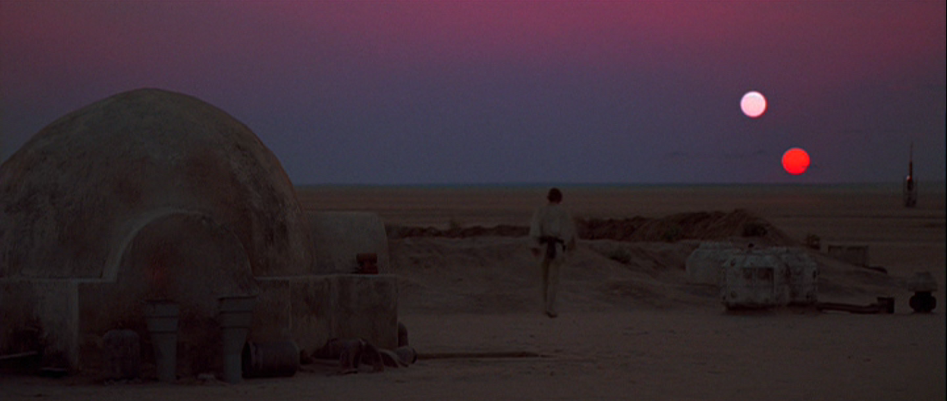 It can’t be said enough that the special effects make the movie, which sounds like a backhanded compliment but isn’t. Star Destroyers and X-Wings and the Death Star and lightsabers and so on are proof of concept. No one’s ever made a movie about God, but the good movies about faith visualize the effect of God’s work through people or through the events of the film. If you’re a Passion of the Christ fan, you either love blood as much as Mel Gibson or you think Caviezel sells the son of God bit. If you’re an Ordet fan, it’s because the actions of the movie reveal the linguistically indescribable power of faith. God is as difficult for us to imagine as the rules of this science-fiction universe, and with the help of the good people at Industrial Light and Magic, Lucas brings those details to the fore. If you’re going to make a movie about space fascism, then we need to see a populated planet destroyed by a superweapon. If you’re going to make a movie about the Force, which is all around us and flows through us, then we had better be able to see how the Force works. And we see it channeled through lightsaber duels, and in the way a pair of torpedoes fly into a duct once a farmboy has put away his targeting computer. Star Wars takes guff, and deservedly so, for making its characters’ minds airily transparent during a decade when more difficult protagonists filled our screens. But the ethos of the movie is in showing us things we’ve not seen before; it’s simply consistent in pulling back curtains on the people, too. (Besides, everyone knows what happens at the end of The Empire Strikes Back is the greatest twist in mainstream cinema.)