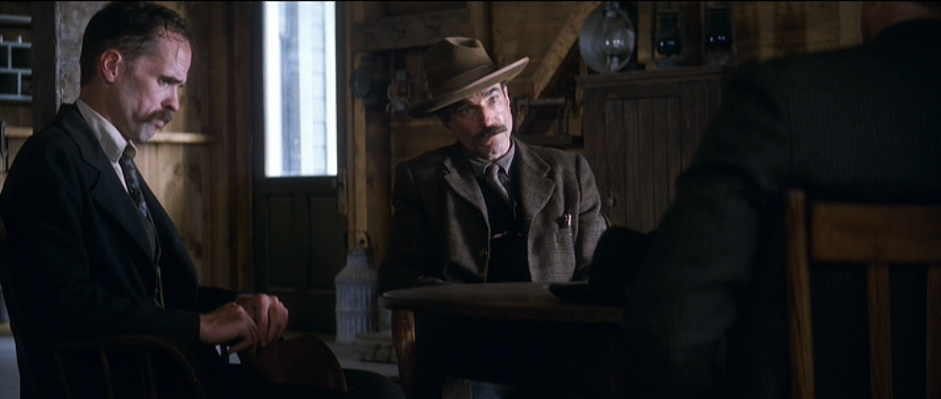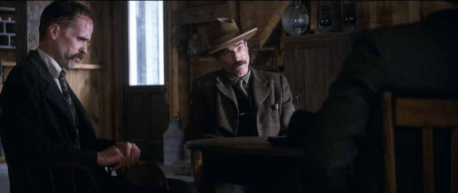 Daniel Day-Lewis is the LeBron James of this exercise. The Golden State Warriors just beat the Cleveland Cavaliers in a gentleman’s sweep this past NBA Finals, but for the first time in his career, it seems no one is blaming LeBron, who put up a 34-12-10 line for the series against what is probably the greatest basketball team ever assembled. The parallel isn’t precise – movies don’t actually compete, praise be – but something about the perfection of the central figure in the endeavor rings true to me. What Day-Lewis accomplishes in There Will Be Blood is Jamesian in that it may be the best dramatic performance ever put on the big screen. (It’s also Jamesian in that at the time, most people were saying that the best performance was in There Will Be Blood, but the better picture was No Country for Old Men.) If that statement is hyperbolic, then that’s fine with me. Day-Lewis is so good in this movie that he is only understandable in the language of hyperbole. Like silent actors, he is comfortable using his body as a primary indicator. The opening minutes do not see him speaking very much, if at all. He bellows at one point, but for the most part we get a sense of the nascent Daniel Plainview through how he shoulders a pickaxe or lies on a wood floor or gestures with his eyes or puts a little whiskey on a bottle for a noisy baby. It is some time before we hear him speak (ten years in the movie’s history, which I like a lot), but that voice is perfect. “So, ladies and gentlemen,” he says to a boisterous group sitting on a gusher, “if I say I’m an oilman, you will agree.” Ten years has, if anything, cleaned him up a little bit; he now wears a big ol’ hat and his mustache is in better shape. (He is also rail-thin; at 6’2″ and 175 Day-Lewis is not precisely Jimmy Stewart, but he is certainly slender and commanding.) But the voice is the thing. His vowels don’t seem quite right; he chokes on them a little, but his diction on consonants is perfect. His speech is polite and measured, but concurrently hurried; he sounds like any other deep-voiced gentleman who is perpetually a few hours away from having a frog in his throat. His first-person rages later on in the picture – “I am the Third Revelation!” and “I have abandoned my child!” and “I drink your milkshake! Skkkssssssh! I drink it up!” – are justly famous, but it’s at whatever passes for even keel in Plainview’s mind that I’m most impressed with. His conversation is not dangerous in itself, nor is his demeanor, but something about him is obviously wrong all the same. He’s like an adult animal whose mother never socialized him properly.