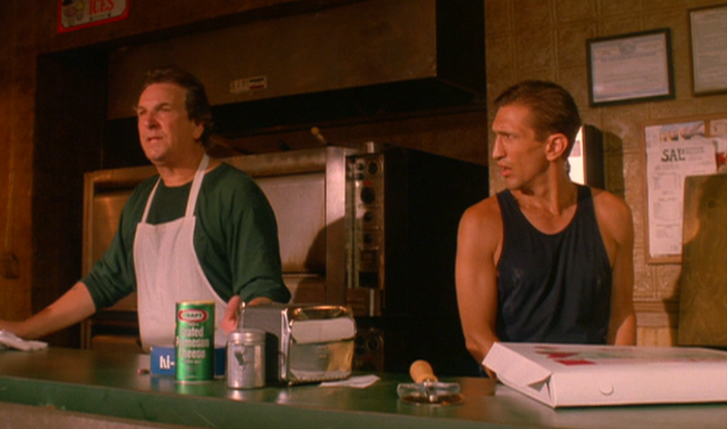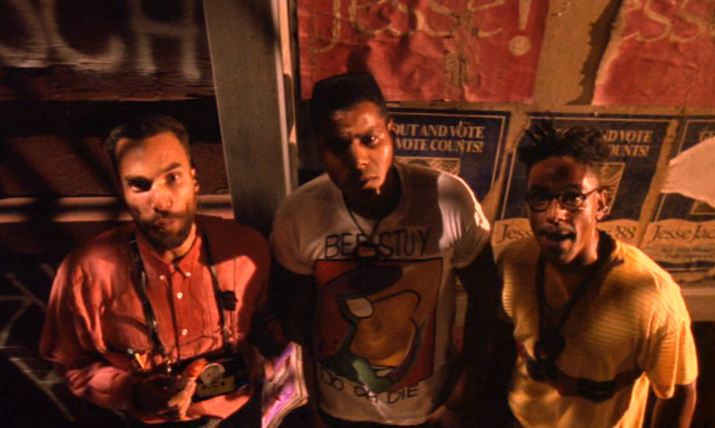 Ask this question a few years later and the results hold, albeit with different people: Michael Jordan, Will Smith, and Whitney Houston. Pino, like a whole bunch of real-life racists, has a hard time squaring what’s distant from him with what he sees in front of him, and has an even harder time doing the sort of metacognition which would challenge why he has to square the two at all. Pino is a different breed than his father, and there’s a genuinely bizarre doublethink that both men do. For Sal, the people are fine but the culture is wrong. For Pino, the culture is very right but the people are very wrong. Mookie, stuck in the middle of the two of them professionally, takes on an uncomfortable role for them. In this instance, he’s in the thankless role of educator. Later, when he throws the trash can heard ’round the world through the window of the pizzeria, he may have saved their lives or at least their health. Do the Right Thing occupies an interesting zone; unlike School Daze or She’s Gotta Have It or Malcolm X, which are movies where black people relate primarily to other black people, Do the Right Thing wonders about black people and white people (and the occasional Asian grocer) interacting with one another. Part of what makes it special is that it doesn’t have to wonder much at all.