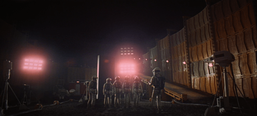 Just as there is the great public perception of 2001 as a little unfeeling, there are hundreds of interpretations, thinkpieces, and critical essays written about 2001. Most of them think about Moonwatcher and his pack, or the mission of Discovery One with an emphasis on HAL’s self-interest, or the Stargate and beyond. Relatively few articles about the movie feature Dr. Heywood Floyd and the Clavius situation, and when they do they typically discuss the incredibly realistic special effects. Sometimes the use of the “Blue Danube Waltz” to back the similarly ordered, precise, and beautiful dance of spacecraft guided by orbital mechanics is featured, for good reason. A writer with a sense of humor won’t fail to bring up the rules for using the toilet in space. Much of 2001 pivots on arrogance, at least from a plot perspective. In the first act, Moonwatcher’s rival at the water hole is arrogant enough to ignore the bone Moonwatcher holds, and he is struck down by it believing that he can drive off the upstart and his community. HAL’s arrogance is the root of his drive for self-preservation; that he may have made a miscalculation is a colossal embarrassment which leads to multiple deaths at his…hands, I guess. But the Clavius act, as much buried in the middle of the film as the Monolith was buried in the Moon, is the only one to me which seems securely to reflect this idea of human arrogance. Think of the way the Americans, still cordially distrustful of the Russkies, then proceed to line up in front of the Monolith and take a photograph of it, as if they were somebody’s Large Sons and the Monolith was some great African mammal they had shot and killed. They are rebuffed (which always makes me laugh, despite the noise that goes with it), but the point is much the same. The people overstep themselves here, as technologically advanced as they’ve ever been but still not understanding the Monolith itself. Even worse, they seem unwilling to extend themselves much further, to really indulge themselves in the advances that the Monolith is able to make them capable of. While 2001 may not be a warning in the same urgent sense that we might conceive of Dr. Strangelove as a warning, it certainly does have a message for its Cold War audience all the same. 2001 is fundamentally optimistic; it believes that improvement, even if it’s preceded by semidivine intervention first, is possible. It changes the message of our cruel Darwinism from “Adapt or die” to “Evolve and prosper.”