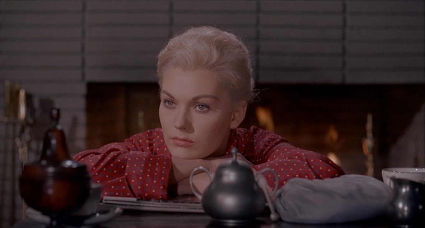 Contributors to the decennial Sight and Sound poll named Vertigo the greatest movie of all time in 2012; contributors to the AFI 100 Years…100 Movies project ranked it sixty-first in 1997, but in 2007 ranked it ninth. In a funny way, I think it’s fair to say that no movie is trendier among the smart set than Vertigo. Like Citizen Kane, Vertigo is a technical marvel, not only beautifully made but innovative, too. Vertigo uses the dolly zoom to effect and for the first time to boot. Like Citizen Kane, Vertigo draws us into the mind of a difficult, perhaps even disturbed, white American man. Like Citizen Kane, people in the time of its original release realized that Vertigo was very good but were hesitant to heap too much praise on it. It’s beautiful, people said, and it’s a corking good mystery, but it’s a little too much, right? Unlike Citizen Kane, Vertigo is the work of a director far nearer the end of his career than the beginning; Hitchcock had directed more than forty features in nearly thirty-five years when he made this movie. I wonder if Citizen Kane had been in color, would it surpass Vertigo on this list? Probably. Hitchcock isn’t even the first ’50s director I would name with a special talent for using special color palettes in his movie – I would jump to Douglas Sirk first – but Vertigo uses color as well as any other movie in history. In that third picture above, the red and green that Hitchcock has alternated to depict Madeleine and Judy unite as Judy walks out, slowly and painfully, to Scottie in the form of Madeleine. In elementary art class, one learns that red and green are complementary colors; I think it’s worth remembering that red has no part of green, just as Madeleine has no part of Judy. What Scottie asks for, progressively and insistently and devastatingly, is for Judy to become a different woman that he knows she used to be but who has no relationship to herself. Vertigo is a perfectly good name for the movie, but it could just as easily be Possession or Dominance. Psycho has more moments to make your pupils dilate, and I’ve related my feelings about Rear Window already, but conceptually, no Hitchcock concept gets under your skin and suppurates quite like the plot Vertigo. Similarly, few movies are as willing to turn their heroes into heels so rapidly as this one; it’s not a question here of “kill your darlings,” but “make your darlings insufferable little so-and-sos.”