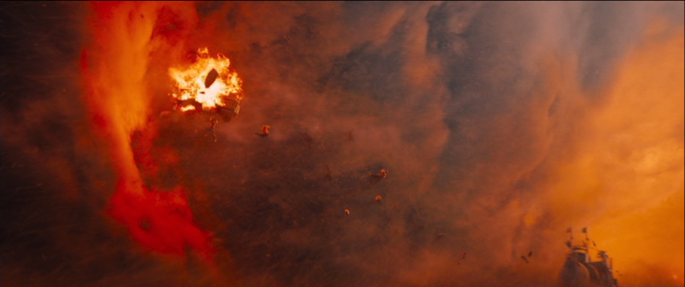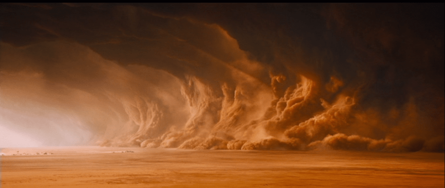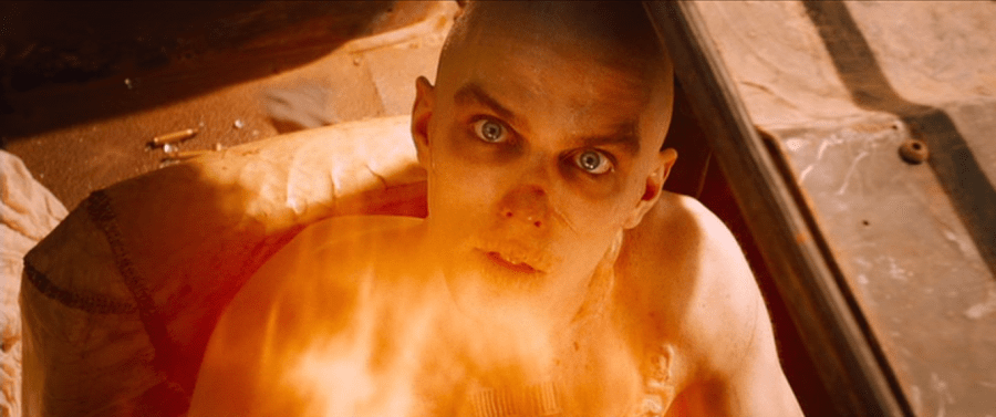 Miller can’t help himself here; Nux is lit up with flames as a sort of immediate and potentially even eternal foreshadowing, which is harsh. “Witness me,” he says hoarsely, which Capable does. He then ensures their safety for good; he got his wish to drive the war rig, but surely his wish did not involve flipping the beast on its head.