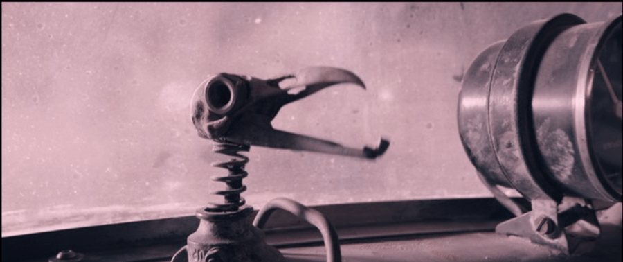 When the Fury Road fever was at its highest – I remember laying in bed, sweating through my pajamas with a temperature of 104, intermittently shrieking, “I live, I die, I live again!” – there was a fair bit of talk about how the movie might reasonably function as a “silent” film. You don’t have to watch more than two minutes or so of special features to get the drift; Miller uses the words “kinetic” and “nonverbal,” while others emphasize the approach of using comic book style cells rather than a more traditional script to guide them, while others speak on the ability of the movie to combine the talking and the action into one. There’s a phrase that’s reused by producers – “chase and race” – which sums up the film briefly and elegantly. I agree entirely with the filmmakers on this point. It’s a movie you feel in the back of your chair and in the armrests, one that pumps the blood faster and dilates the pupils, and that is a rare gift when most big-budget blockbusters prize the lore of their original text over the lure (oooh) of telling an electric story. Fury Road takes an enormous risk in its first ten minutes. An unnamed man eats a two-headed lizard, flips his car trying to escape from unnamed figures in their own strange cars, tries to run away from a horde of thin men painted white in endless caverns, and then is dragged back to their strange underworld in the cliffs; all of this is interspersed with half-second images of characters we do not see otherwise in this movie. Title card.