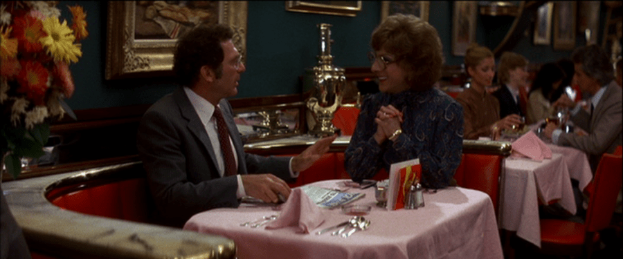 The answer, as Tootsie shows us, is “not very long at all.” Michael Dorsey (Dustin Hoffman) has a drag-it-out fight with his agent (Sydney Pollack) over, among other things, Michael’s ornery objection to what tomatoes do and don’t do. George tells his client that Michael’s reputation is totally poisonous; no one will hire you, he says. Not long after, in his “Dorothy Michaels” drag, Michael reveals two secrets to his incredulous agent: first, it’s him, Michael Dorsey, and second, he just got hired. It’s the tip of the iceberg. He has to fend off his chauvinist director, Ron Carlisle (Dabney Coleman) as well as his lecherous co-star, John Van Horn (George Gaynes), as well as a co-star’s very kind father, Les (Charles Durning). Ron is a tyrant and John a louche, but Les is a widower and a truly decent man; more than anything else, the relationship between Dorothy and Les is my strongest piece of proof that Michael has taken his act too far. One might call on the close friendship that Julie (Jessica Lange) builds with Dorothy, but Julie didn’t have marriage on her mind, either. Meanwhile, Michael becomes an even bigger pain in the butt in his original personal life. Jeff (Bill Murray) is Michael’s roommate and a writer whose play, Return to the Love Canal, is in development hell for obvious reasons; his social life goes out the window when Michael, wary of the image he’s trying to project with Dorothy, begins to order his buddy around. Saddest of all is Sandy’s (Teri Garr) plight. She and Michael have a thing before he goes full Dorothy. (Cruelly, the role of “Emily Kimberly” is a role that Sandy was going for that Michael helped her try to get.) They continue to have a thing that Michael increasingly blows off as he falls for Julie. So no: “not very long at all.”