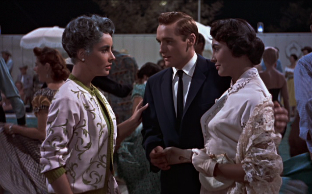 In Stevens’ A Place in the Sun, released five years before Giant, Elizabeth Taylor plays an adornment. Montgomery Clift is the one who counts in that movie, and Taylor plays little more than a symbol of wealth/beauty for him to aspire to and act upon. It’s an incredible waste of her ability. Despite the fact that in some ways she appears to be much the same in Giant – just a foil for Bick and Jett, just a cow for two bulls to fight over – there’s much more to Leslie than simply being a prize. For more than half of the movie, Leslie is the sole moral authority we have. Bick leaves his employees to rot; Leslie expresses her gratitude and tries to ensure that they receive a modicum of care. The Benedicts try to act as if nothing’s changed about Reata once Leslie arrives, but she refuses to be limited to making babies. Bick rambles about having a son take over Reata just as he did and his father did; Leslie takes Jordan’s (Dennis Hopper) side and says that if he wants to be a doctor, then he should go on and be a doctor. Bick scolds Jordan about marrying a Hispanic woman; upon originally hearing the news that her son is married, Leslie beams and embraces her daughter-in-law. Stevens has three visually arresting actors on his hands. Dean’s entire body is made out of Jell-O, where Rock Hudson, for goodness’ sake, got the name from the Rock of Gibraltar and the Hudson River. But their characters fly off the handle because they don’t have any other emotional reaction available for “anger” or “disappointment” or “confusion.” Leslie flies off the handle when something deserves her ire; people who seldom lose their temper are always scarier when that self-control fades away. Leslie is the evolution of Melanie Hamilton; not even Scarlett O’Hara could ever call Leslie “mealy-mouthed,” but Leslie has the same whalebone firmness. She knows what’s right and wrong, and she’s capable of setting the example. Bick doesn’t take to it quite as wholly as Rhett Butler does, but eventually her firmness guides him into making a decent choice.
