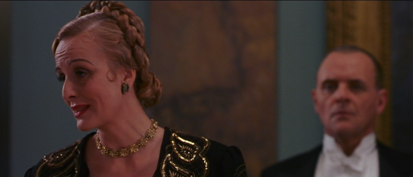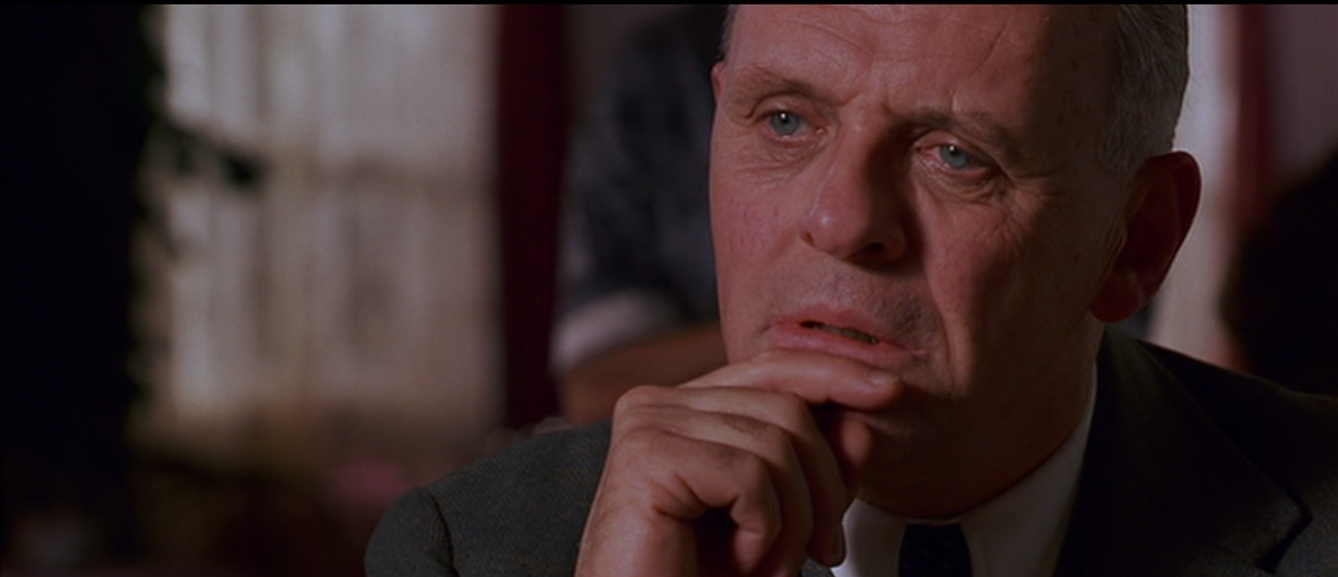 Hopkins may have won his Best Actor for Silence of the Lambs – an award which, I’m sure I don’t need to tell you, should have been Best Supporting Actor – but there’s a much more interesting body of work in The Remains of the Day. Hopkins is really in his element here as a man who expresses his feelings according to how many words he uses in a sentence. He is not immune to feeling, which seems to strike him on inopportune nights. His father dies on the last night of a conference hosted by Darlington in order to create greater sympathy for Nazi Germany among the British nobility. He finds out that Miss Kenton (Thompson) is to be married to another man and will be leaving service at Darlington Hall on the same night that the Prime Minister and his Cabinet visit Darlington Hall on the eve of the Munich Conference. In both cases he seems confused; his superiors have to ask him if he’s all right, if he needs a moment. He assures them that he’s quite well and then reverts to his state of obvious disarray. During the night of his father’s death, at first it seems like he’s pushing his feelings down for professional reasons. He will deal with the issue later, when he is free to do so. (Even if not all of us would do the same thing, that’s at least a little relatable.) But as the night continues, the issue at hand isn’t that he’s at work. The problem is that he has no idea how to feel. It’s the greatest emotional ask that anyone has requested of him in years, maybe ever, and after hearing the request he doesn’t have the strength to answer its call. It’s like being told to eat a birthday cake or a whole pizza after two weeks of fasting; he doesn’t have the room inside anymore.