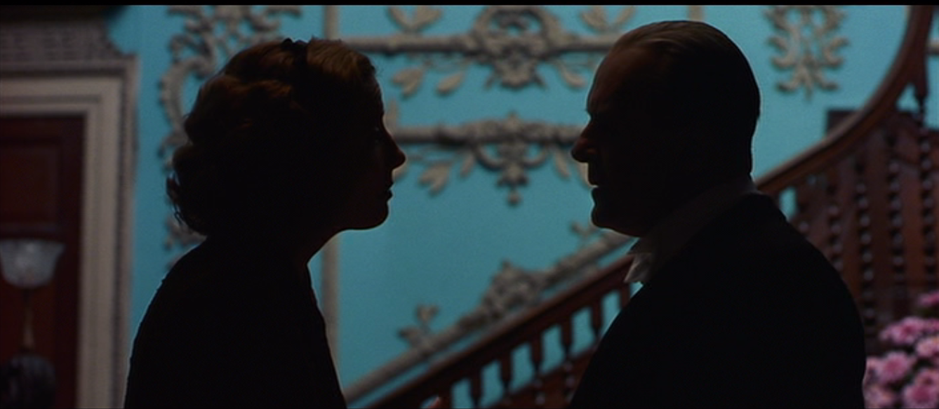Miss Kenton poses a similar problem for him. The two of them are clearly invested in one another, even beyond Stevens’ stultifying professionalism and Miss Kenton’s more humane approach to her job as housekeeper. In one scene, where she tries to figure out what kind of book he’s reading – as usual, Stevens is being bleedin’ mysterious about himself – Kenton’s fingers appear to be everywhere. The two of them barely touch, but there’s an incredible electricity between the two of them. Hopkins recedes into the shadows, where the weak light on Thompson’s face illuminates her smile while casting her hands in and out of darkness as she tries to grab the book. He eventually backs her off. Later on, after a trying day, Miss Kenton asks Mr. Stevens if they might hold off this evening meeting due to her fatigue. I should have been more considerate, Stevens replies. We will not have these meetings anymore so as to alleviate your fatigue. She tries to express that it’s a single experience, but Stevens is too hurt – and too out of practice with reacting healthily to his feelings – to be reasonable. Perhaps we will only communicate through notes, he says before leaving.