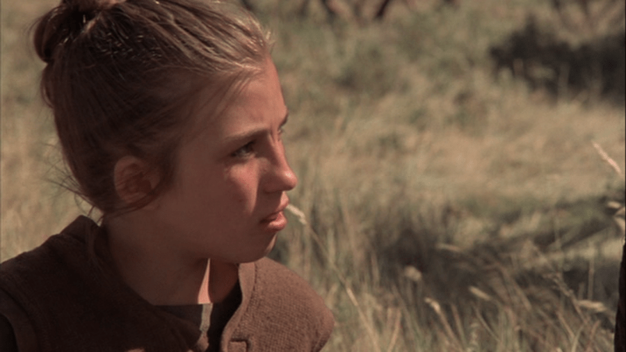 Shepard’s farmer is no hero; he is the capitalist overlord. If you don’t work hard enough, Linda comments in a voiceover, you’re kicked out without a second thought. There’s always another person who wants to work in the job you’ve got. (It’s another parallel to The Grapes of Wrath, where that threat of dismissal hangs over everyone in the camps like Poe’s pendulum.) While his scores of workers toil in the fields, he sits on chairs and couches under parasols. Something about Abby catches his eye – her beauty, her perpetual frown, the way she runs awkwardly behind the thresher. He comes to speak to her. How did you get here? Where are you from? A rainbow of sunset colors bleeds together behind him as he comes to see this skinny girl with the heap of brown hair. These meetings occur more and more often. They happen in the way of most scenes in Days of Heaven: short and pointed. It’s one of my favorite elements of the movie. Malick doesn’t use many words to make scenes work, to mine directly to the feeling, focusing on each one long enough to get the point. Days of Heaven has an epic vision, but Malick is not George Stevens; he tells the story of Days of Heaven in half the time Stevens needs for Giant. He finds the most distinctive part of each person’s look and hones in on them, frequently finding in the characters a wanting, a fear, a disdain, an uncertainty.