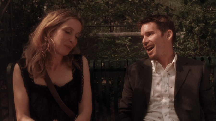If Sabrina is a movie which is aided by the passage of time, Before Sunrise, a little ironically, is not. Making Before Sunrise the first movie of three about the same couple has robbed it of some power. We know an awful lot about how Jesse (Ethan Hawke) and Celine (Julie Delpy) will continue to build their relationship over the next two decades, and so the question hanging over the end of the film – thought and rethought as we review the landmarks of Vienna that Jesse and Celine have brushed up against and left their indelible mark upon, making the places feel so empty without the people – has been answered. We know they will meet again. But the reason why Before Sunrise still makes me misty is because the moment of farewell is so wrenching. Even if we know, they don’t. Delpy’s face bears a hopelessness that Hawke’s probably can’t. He misses her already, but she’s beyond that: she aches to see him again while he’s standing in front of her. Maybe it’s the sex in the park that did it, but more likely it’s the sense of destiny that young people who find each other seem to effortlessly slouch into. People their age, often as not, believe in the alignment of stars for unknown purposes; during that long, vivid Vienna night, everything seems to fall into place for them. They have a poem written about them. They manage to score a bottle of wine from a sympathetic bartender. Their tiff ends without any serious fallout and when they wake up, the music of an older, simpler time serenades them. They should know that they’ve been bound together when they get on their separate trains, but young people, even when the facts surround them, don’t always know how to grapple with the sums. Before Sunset and Before Midnight will ask us to question the strength and longevity of that binding, but in Before Sunrise it is unquestionable.