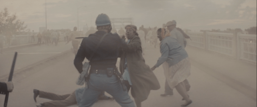 He gets a significant assist from the ensemble cast, which is both huge and marvelous. Ejogo plays a woman who knows her husband as a man and not a saint. Colman Domingo, Andre Holland, and several other men playing SCLC folks could each have carried this movie by themselves if needed. Special attention should be meted out to Wendell Pierce as Hosea Williams, who is probably the gruffest SCLC gentleman but, as the man who drew the short straw and marched out on the bridge, plays the scene with a powerful restrained horror. He and James are the glue in one of the most powerful acts of a film that I’ve seen in some times; there is an epic quality to the Pettus Bridge which Williams and Lewis anchor us to. One cannot look away from the sight of regular people being beaten to a pulp with nightsticks; if there is a historical accuracy which DuVernay means to tie us to, it’s that one.
