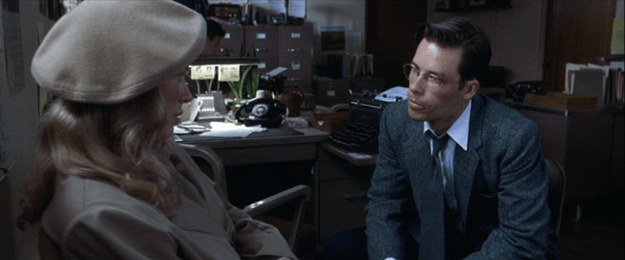 Other movies in this series are going to run towards something like realistic depictions of a time period. L.A. Confidential knowingly indulges in the excesses of a ’50s town that senses it’s lost something in the recent past. Lynn Bracken is a pricey prostitute who bears a strong and purposeful resemblance to Veronica Lake. For the early ’50s, it’s sort of a weird choice, like fawning over Jessica Lange or Sally Field in the ’90s. (Or, ha ha, Russell Crowe in the ’10s.) L.A. Confidential thus looks over its shoulder while we look over ours to watch, and it’s part of what makes the movie fun in the first place. It looks like a ’90s movie and feels like a ’90s movie (complete with its Usual Suspects-lite twist); ’50s cosplay reigns supreme. Some things are the same as a contemporary viewer: scandal, especially sex scandal, sells, and the L.A. cops don’t have such a hot relationship with their African-American constituencies. Some things are different: who can imagine two cops as moral, really, as Bud White and Ed Exley? It’s not that they’re so squeaky clean, because they’re not. White spends the majority of the movie ducking internal affairs and doing Smith’s dirty work. Exley is the dictionary example of a prig, down to the glasses and the schoolboy belief that what he’s serving is unadulterated justice. We can imagine cops like that from the ’50s. Something gets in the way in the ’90s (or ’10s). Bud White isn’t machismo personified because he’s a tough-talking cop; he’s machismo personified because of the way Smith intones, “I wouldn’t trade places with Edmund Exley right now for all the whiskey in Ireland.” Ed Exley doesn’t have a darkness inside him that it’s impossible to cope with because he’s like, seen things, man, but because some hood shot his dad and was never seen again. In the ’90s, those motivations are like affectations, where in the ’50s we can just accept them for what they are.