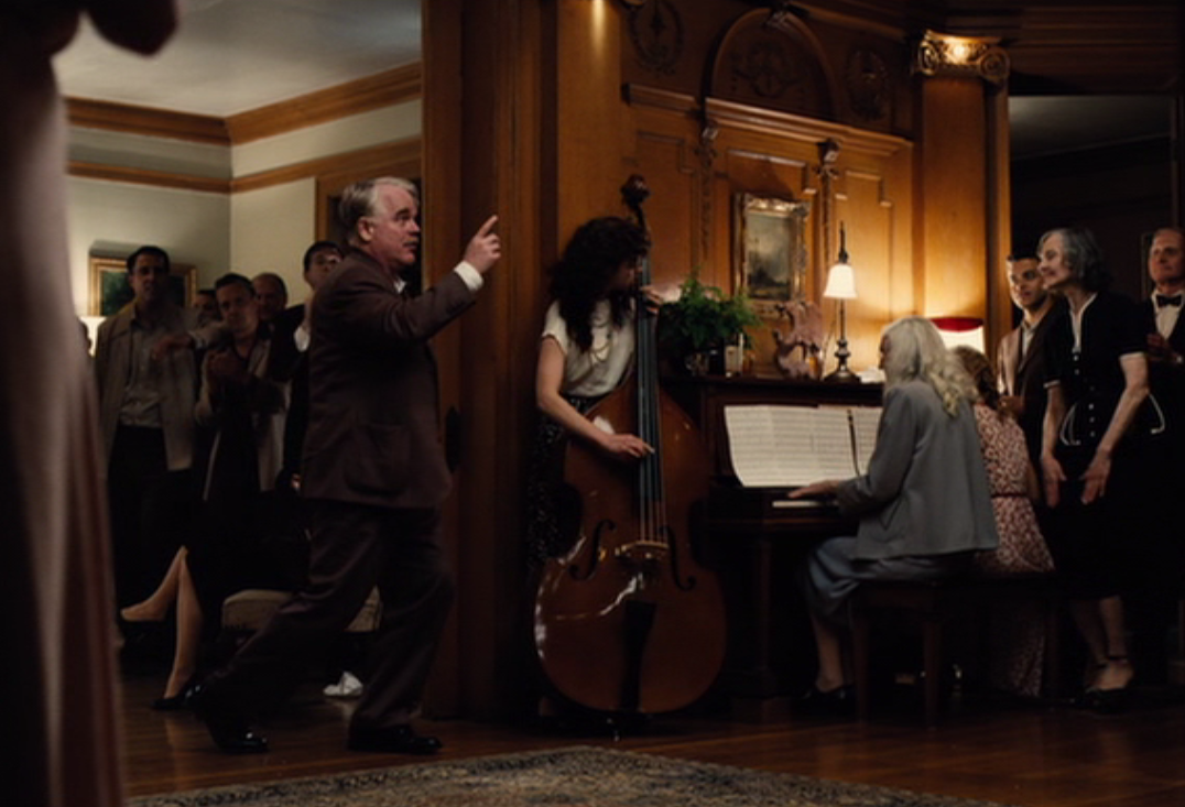 On the other hand, Lancaster Dodd represents the optimism of the time. Everything can be, will be revealed as more and more people join the Cause. The fact that it’s little more than a personality cult with even less evidence to support its veracity than exists to support Christianity or Islam or Hinduism is the neglected underbelly of the optimism, like an appendix begging to burst inside of it. Lancaster knows in his heart that he’s no prophet—surely he must—but that doesn’t stop him from thinking about the Cause as a distinctive and important quest for truth. In much the same way this similar “Damn the torpedoes, but on the other hand not so fast” state of mind must have underlined post-World War II thinking for many people. How could a thinking person go back to church and worship God after the wholesale slaughter of his children? How could people have faith in their institutions after watching them allow Hitler and his followers open a new chapter in inhumanity? How could people wake up and go to work with the dead lying all around them? Yet they did. For whatever doubts Lancaster has, which are only obliquely noted in Hoffman’s manner, he still gets out of bed each morning and is the leader of the Cause.