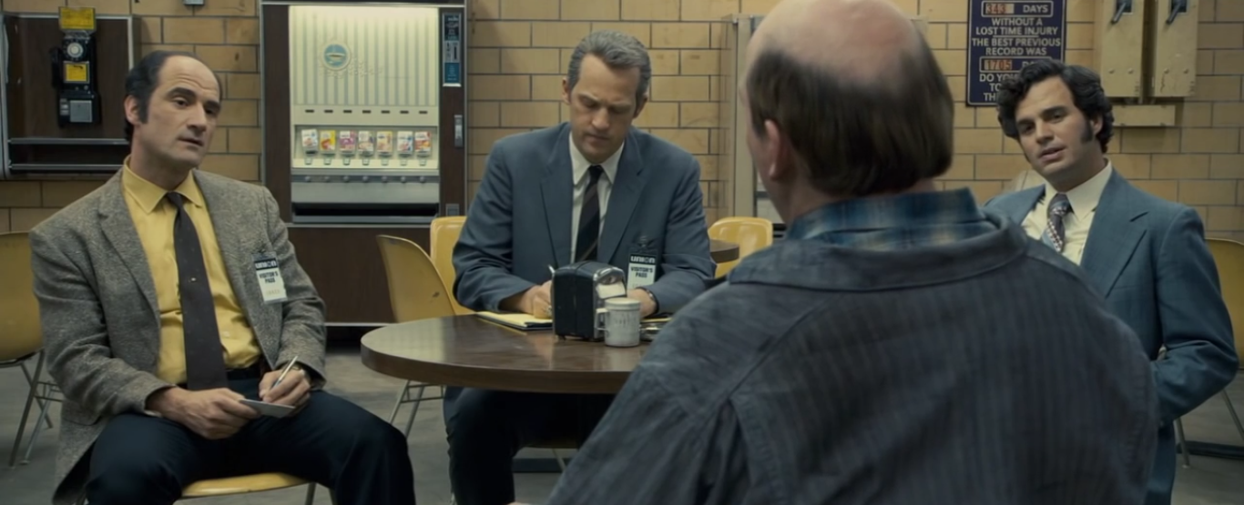 The CGI in this movie is a relic of that mid-2000s overuse, when it was obvious that the movie was using CGI and thus it was largely ineffective but directors didn’t have many other economical ways to work around it. One thinks of the amber lighting in the scene where the Zodiac killer offs a taxi driver, and then again when Toschi and Anderson come on the scene to collect evidence. It’s a little more than real, which I find a little off-putting but still effective. Serial killers are carny freaks in the present-day, fascinating enough to pay to gawk at but not something any of us really want to touch. Let them escape, though, or at least elude capture, and they take on the mythical quality of Jack the Ripper. Zodiac purports to come up with the identity of the man himself, even if he’s less august and far-reaching a murderer than he’d like to pretend. (As much as I don’t like to put directors in their movies as a general rule, there’s certainly a lot of David Fincher in Robert Graysmith.) Arthur Leigh Allen takes the rap in this movie, but aside from the fact that Robert can look him in the eye in that hardware store and know that he’s the Zodiac killer, he never comes to trial. In his ubiquity and in the way that the killer is played by different actors, he gains mystery. More than that: for a mostly unseen and unknown presence, he seems to have an effect on an entire city in the way that regular folks in medieval Europe ascribed certain actions to God. No one knows for certain when he’ll pop up and strike you down, if it will be in the middle of a tryst or when you’re at work or when you’re simply minding your own business. He is always on television even if you never see his face; his voice is on the radio even when it’s not really his voice at all; he is inside the Graysmiths’ house or the Toschis’ bedroom because the people who live there can’t get him out of their heads.