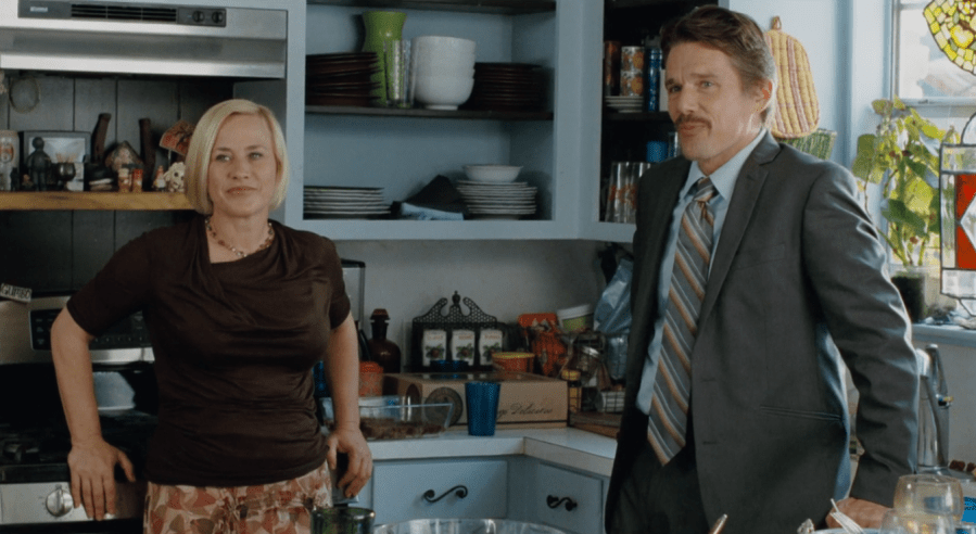 Mason, Sr. and Olivia are more classical examples of changing people. Olivia is one of those intelligent, motivated people whose judgment when it comes to picking a mate is just utter garbage. She gets more knowledgeable, more open, and more ambitious in each year, and yet her relationships with men fall through. Perhaps it’s a sign of progress that when she breaks up with Jim, it doesn’t require a rapid and stunning exodus from that town itself the way she and her children had to flee Bill and his terrifying alcoholism. (Sam and Mason have gotten fairly close with their step-siblings. Will we see them again? they ask Olivia. I don’t know, she says; it turns out that, to be the best of our knowledge, they don’t.) The transition from shift-to-shift worker to professor is one of the most understated and most impressive elements of the movie’s plot. Mason, Sr. grows up too, from a life without seatbelts to a life where he tiptoes around the performative religiosity of his in-laws. He gets a real job after tooling around in a band for a while; it’s one of those bands that inevitably gets successful once he’s gone. He is a good father to Sam and especially Mason once he comes back to them; whether or not he’d have been any better as a full-time dad in their formative years is another question entirely, and one that I’m more inclined to answer in the negative. Sam and Mason are thrown around half a dozen different circumstances in their young lives; Mason, Sr. would have almost certainly walked away at some point, and he would have been just another deadbeat.