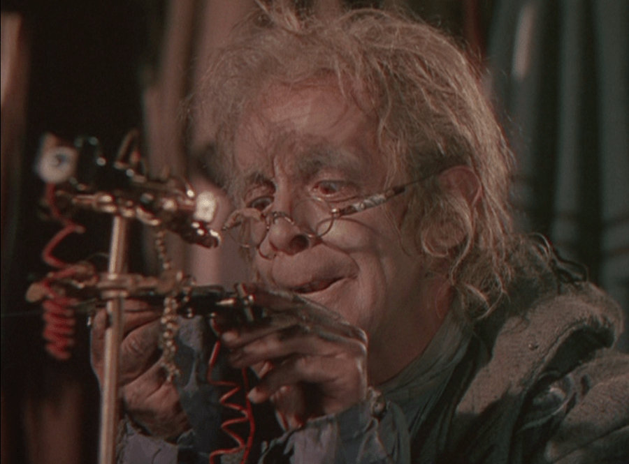 I’m also fascinated by the magic glasses Hoffmann buys from Coppélius in the Olympia section of the film. There is no element more referential to cinema itself than the power that the inventor gives the student. Look through this particular window wearing this item and what appear to be mere models move, taking life from their forms. Hoffmann is delighted by the power of the glasses (which also help him see Olympia as a living person as opposed to a wind-up doll). Nothing could be more like a movie; step into the theater, look up at the screen, and the projector runs a little strip through itself and adds light to create an entrancing effect. Hoffmann has seen a movie for the first time; it’s no wonder that the typically dour man is thoroughly amused. And, as is true for any first-time moviegoer, he has to learn quickly and sadly that what you see is not real. His dismay at seeing Olympia torn apart by her creators—sort of like the director and the producer ripping at the final cut of a movie—is at least as much for her falseness as it is for his short-lived grief.