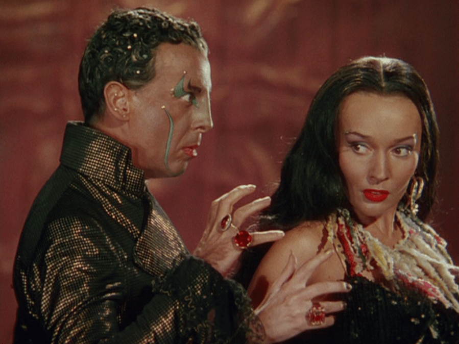 The Tales of Hoffmann is one of those lovely movies which is a personality test for the viewer. The movie is a technical marvel, totally beautiful, beautifully aligned. It is no small thing to decide to take an opera, which are essentially theatrical, and turn it into a cinematic endeavor; as an adaptation of a play, more or less, The Tales of Hoffmann stands out because it has no interest in running back the opera with more realistic sets. What the Archers accomplish here is utterly fantastic, using enormous paintings and memorable costumes to dazzle. There are few names that create a mental image of a film faster than Powell and Pressburger, who brought Technicolor to its highest heights; out of all of their shared color pictures, The Tales of Hoffmann is maybe the most beautiful. The costumes and makeup are essential here. In a movie like A Matter of Life and Death, there’s a limit to just how ridiculous and lovely the costumes can be because its protagonists are military personnel and a psychologist. In Hoffmann, there are no such limits, which is why we get Moira Shearer and Edmond Audran in these luminous costumes for a ballet which, frankly, is outside the movie’s major plot lines. (The Dragonfly sequences are relatively understated in comparison to just about everything else happening in the movie; what they remind me of is Fantasia, which is extravagant praise for something relying on artistry on and through real people as opposed to animation.)