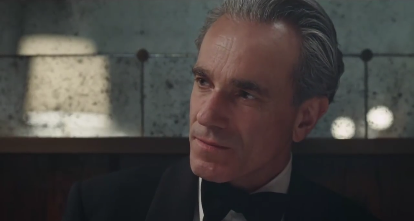 One of the interesting developments in Daniel Day-Lewis’ acting is how thin he’s gotten. The man has never been chunky, but it’s been twenty-five years since Last of the Mohicans and fifteen since Gangs of New York, two movies partially made on his muscular swagger. The movie calls upon one of those old-fashioned sequences of a man getting dressed in the early going, and in it we see a man shrunken, practically. No one in this movie has the power to make Day-Lewis short, but how easily we see the muscles in his face and the way his jaw looks; how thin his calves seem as he puts on those lurid socks; his torso seems much more concave than usual. One gets the sense that he does not eat much; we watch him drink lapsang souchong at breakfast every morning but we never see him take more than a bite of one of the pastries at the table. He has a table set aside at his favorite restaurant, but we don’t see him do more than drink martinis. (He also has one of those jobs that keep his hands occupied at all times, which would rather impede snacking.)