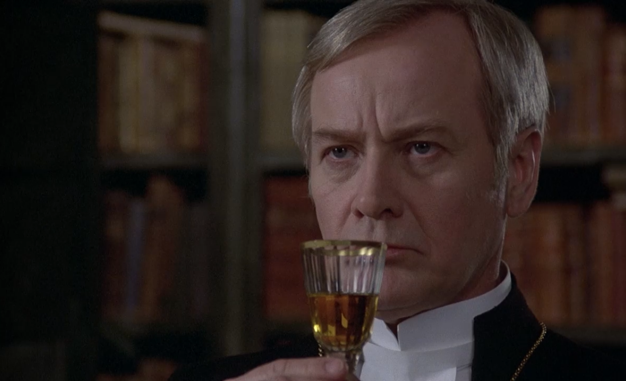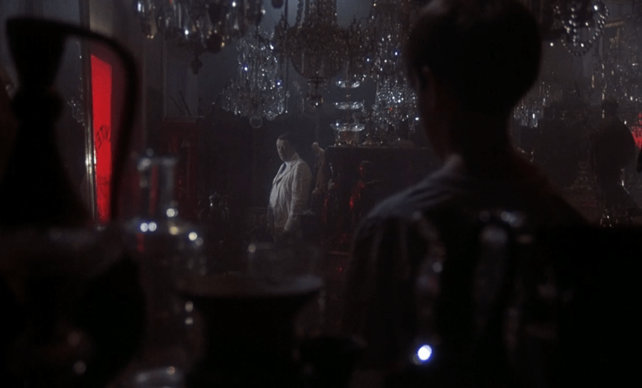 Allan Edwall’s Danjel in The Emigrants speaks one of the most powerful lines I’ve ever heard after illness claims his infant daughter. I thank you, God, Danjel says, for you have removed the one I idolized and which kept me from you. In Fanny and Alexander, Oscar is the idolized one, taken away from his family. Emilie yowls and screeches like a demoniac, pacing back and forth in front of her husband’s corpse. After the fact, Alexander and Fanny (Pernilla Alwin) are more composed—Fanny is even fairly self-possessed as she watches her father die—but Alexander is totally inconsolable. He has to be dragged to his father’s deathbed, dragged out from underneath that bed, dragged to say goodbye to dying father, who opens his eyes for his son despite the agony of the light. Oscar’s death is the beginning of the movie, the chance for the smooth-talking Bishop Vergerus (Jan Malmsjo) to enter the picture and woo the beautiful bereaved. (There is, in Bergman, an unsavory Vergerus for every occasion; one wonders who the original model was. My money is on some Uppsala hooligan who TP’d Ingmar’s lawn. One is a little disappointed, too, that only Jarl Kulle takes advantage of the menace in drawing out those three syllables.) Unsurprisingly, it is also where God begins to creep into the movie, although the movie from the first moment of Vergerus’ thrall knows that God is not present in the churchman’s urbane, savage persona. At least, there is no god in there who does not agree with every scrap and tittle of Vergerus’ doings. As he comes into the Ekdahl house, he checks his hair in the mirror; obsessed with the flesh either for its pleasure or its mortification, he is one of those implacable monsters which inhabits any fairy tale.