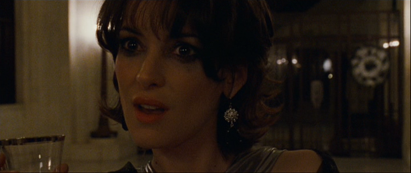 It’s not until Black Swan makes a casserole of foils out of its characters—Nina with Lily (Kunis), Beth (Winona Ryder), and Nina’s nameless mom (Barbara “Black Seagull” Hershey)—that the movie begins to stir the pot. Lily is set up explicitly by Thomas (who, though he inhabits both roles, is much more Rothbart than Siegfried) to be Nina’s outrageous alternate. Nina lives at home with mother; Lily comes from San Francisco without any discernible ties. Nina dances with her hair back tight and with precise footwork, and Lily’s hair is down constantly while she treads emotionally through her steps. Nina wears white and pink and has an inexplicable rash above her shoulder blade. Lily is always in black and has a giant back tattoo with wings outstretched. Beth, the prima ballerina Nina replaces, is another chess piece moved by Thomas; unfortunately for her, in her thirties and beyond her best days performing, she is a chess piece made to be sacrificed. I’ve written before that Ryder is inspired casting not just because she has an impressive tabloid history, but because she was Natalie Portman before Natalie Portman; put The Age of Innocence and Little Women eight years ahead, and May and Jo belong to Portman. Of Nina’s foils, Beth is the least seen and maybe the most talked about, a specter of the mortality that comes for all dancers, with raccoon eyes at a fundraiser for the ballet or stabbing herself in the face with a nail file in a wheelchair. (She also has some of Lily’s recklessness in her, a fact that appeals to Thomas.) Beth is where the movie’s horror elements, like jump scares and stabby self-mutilation, come to the fore. All the same, she has grace in her figure and success in her past; Ma Sayers got pregnant at thirty and chose the baby over her own ballet career, which was brief and inglorious. Since then she has lived through her daughter, a puppet she manipulates with a mixture of passive-aggression and infantilization, and seems to secretly resent for having become the more successful dancer. There is still a girlishness about her when she’s happy which feeds into the same for Nina. There seems to be much the same path available for Nina, who has no prospects short of snogging Thomas when she wants a part or when he’s trying to make a point, and whose meekness might transform into something more terrible if her mother’s bitter loneliness predicts anything.