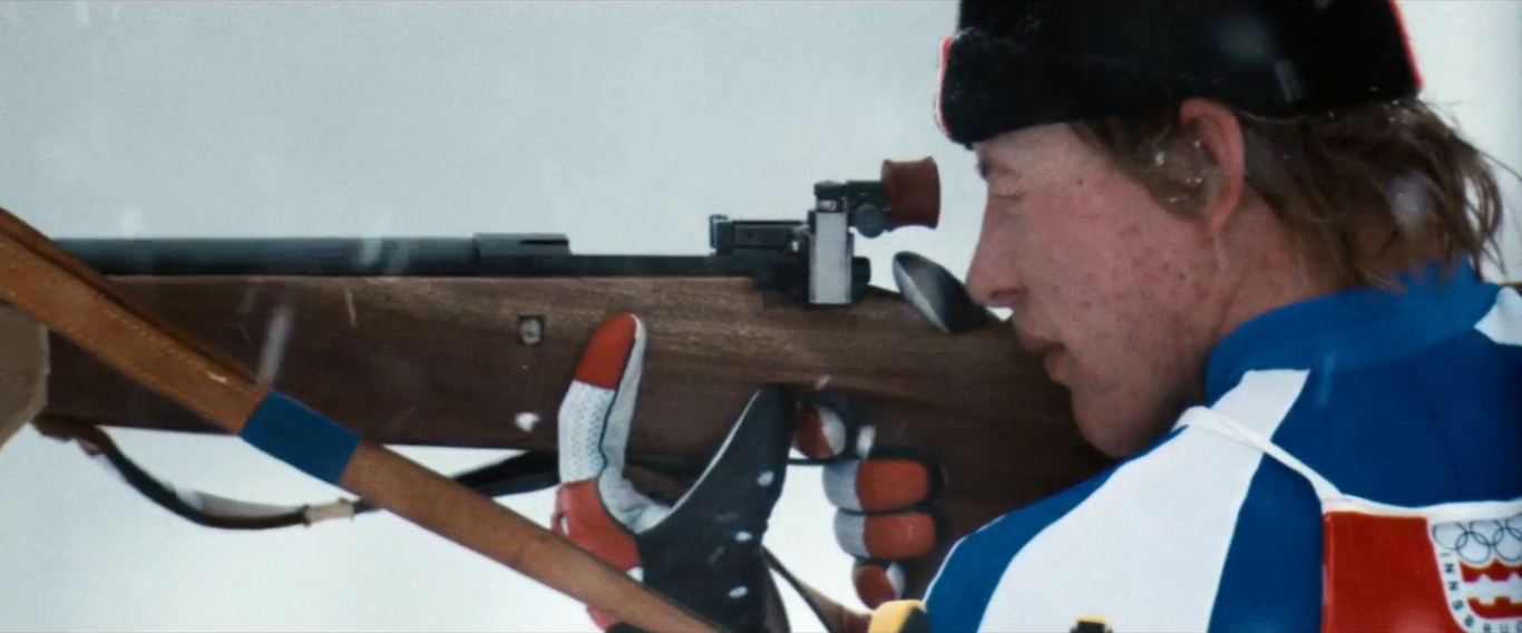 White Rock has two advantages over the average documentary. The first is Rick Wakeman, whose score for the movie is precisely the kind of kinetic music which one wants for watching young people fling themselves helter skelter over the ice. His music for ski jumping is ethereal and piercing, the combination of a man hurtling down a ramp and placing himself in opposition to the mountain in the far distance. His music for pairs’ figure skating is so flowery and gentle that it almost feels like someone else’s work, although he also manages in one sequence to pair the powerful energy of figure skating (which people never seem to talk about enough) with a madcap tune. Biathlon receives, in my opinion, the most memorable music of all for a sport which seems totally bizarre on first hearing. For the sport which involves the difficulty of cross-country skiing and the precision of long-range marksmanship, Wakeman has come up with music that in its quiet moments reflects the intake of breath and in its more exciting ones imitates the chipping of arms and legs, the speck-by-speck precision of aiming a rifle while one’s arms are shaking with exertion. Eventually, the two blare into one another, as is inevitable in the biathlon as the race nears the end and the fatigue grows ever greater.