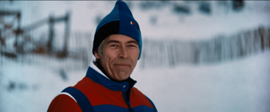The second advantage is somehow even more unexpected than Wakeman: it’s James Coburn. How and why Coburn gets into this documentary is beyond me, but he turns out to be a very welcome presence. Sometimes operatic (“flashing blades” for hockey), sometimes funny (as when he asks Karl Schranz about the wax he puts on his skis), sometimes forthright (I didn’t even know what luging was until I got to Austria, he says), Coburn is the human face of a documentary that could get esoteric very quickly. He tries several events out for himself. He gives a go at biathlon, comparing his shooting before and after skiing 1,000 meters. He puts on the pads and gets in the net for the Austrian hockey team at practice. They send him on a bobsled and even let him drive the thing, which is ludicrous; when it looks like he’s going to give the luge a shot, I was pretty sure they were going to kill Coburn for Art. Mercifully, it’s not him. “You didn’t think that was me, did you?” he grins, and I was relieved. Hosting the program feels like a natural for him, and as much as anything else he seems to be having a good time. Wakeman and Maylam provide the grandeur; Coburn etches wry smiles and offhand comments into that edifice.
