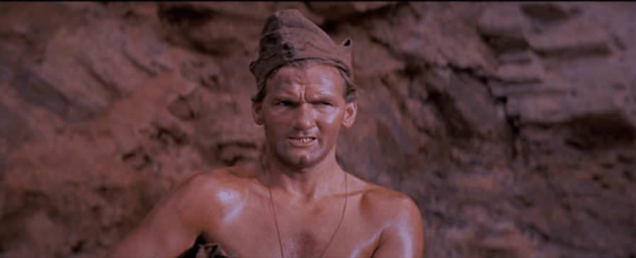 Even by the standards of the English-language POW subgenre, The Bridge on the River Kwai is a fairly still movie, and it doesn’t always do itself a service by being a little slow. Stalag 17 is chatty, but once Sefton figures out who the informant is, the movie becomes a genuine pulse-quickener; The Deer Hunter has Russian roulette, because reasons; The Great Escape has the great escape. The Bridge on the River Kwai ends with a great big kaboom, but it relies entirely on character interiors to work in a way that not even Wilder tries to do in Stalag 17. What other movies would find fighting drama in, such as the commando team’s dangerous trek through the jungle en route to the bridge, is kept largely at the psychological level. Certainly it lingers on the Japanese soldier who surprises the heck out of one team member, and it makes a great fuss about a foot wound suffered by another, but all of it pays off in a single long lecture about the value of life from Shears (Holden). This general play is not entirely successful—only Alec Guinness’ character is interesting enough to make that work—but when it hits, it hits.