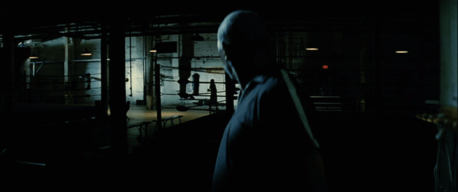 Maggie is en route to winning a championship against her opponent, Billie Osterman (Lucia Rijker), who everyone knows is a cheater and who, Scrap tells us, is universally celebrated because she delivers cheap shots. After pummeling Osterman through one of the rounds, Osterman punches Maggie while she’s on her way back to her corner; dazed, she falls neck-first on the stool that someone has put in her corner prematurely. This paralyzes her, and just to show that the movie needs Maggie paralyzed because it has no idea what to do with her if she won her match or if she lost it cleanly, we hear nothing about legal action against Osterman for an assault which is captured on film and televised. The movie slows to a crawl after breezing through Maggie’s one-round KOs, and it’s around here that the movie careens out of control. There’s a scene in which Maggie’s freeloading family tries to get her to sign her money over to them, though Maggie spits the pen out of her mouth before she can be convinced to give her welfare cheat kinfolk anything and kicks them out of her room for good measure. Setting aside the right-wing mythology of such a scene, it’s just bad storytelling. All we gain from straw men like the Fitzgeralds (or Osterman) is contrast, the absence of character building. The movie is not sure how to show us that Maggie is a good person except to have her run on a beach, hit the punching bag into the wee hours, and the create a world in which everyone not aligned with her is somehow evil. Jesus Christ was surrounded by fewer evildoers than Maggie and had more support in his final hours than she gets in her last weeks. Like Christ, Maggie chooses to die; unlike Christ, it’s impossible to find a point in her death.