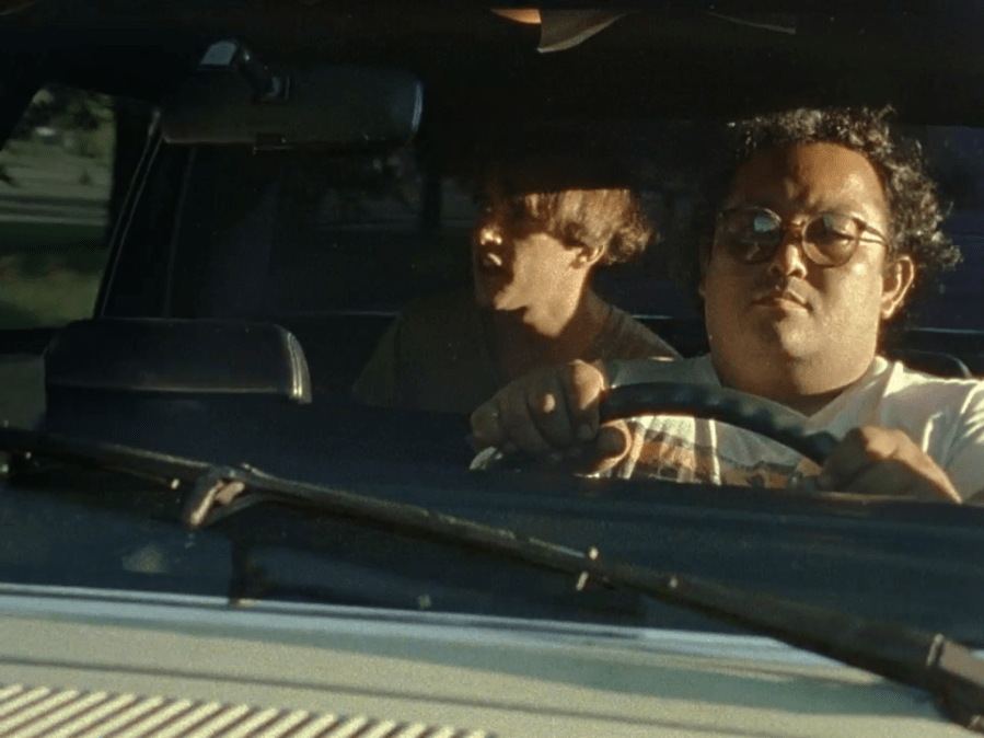 After so much movement, it’s interesting to see how both films end contemplatively. At the end of Slacker, we’ve been introduced to a small group of friends climbing up their own mountain. After watching a movie that is almost contemptuous of cuts, the sheer number of them in the last two minutes or so of Slacker makes it feel like these people running uphill have been shot out of a cannon. “Skokiaan,” as far as I can tell, is playing in the background. One of the young people is standing on the edge of this cliff and looking out on the valley below. He pours out his water bottle, puts it down, and corner kicks it into the gap. He has his camera and seems to be thinking about what to do. He wants to throw it, clearly, but can’t quite bring himself to do it. He pump fakes, cradles, and eventually flings it away.