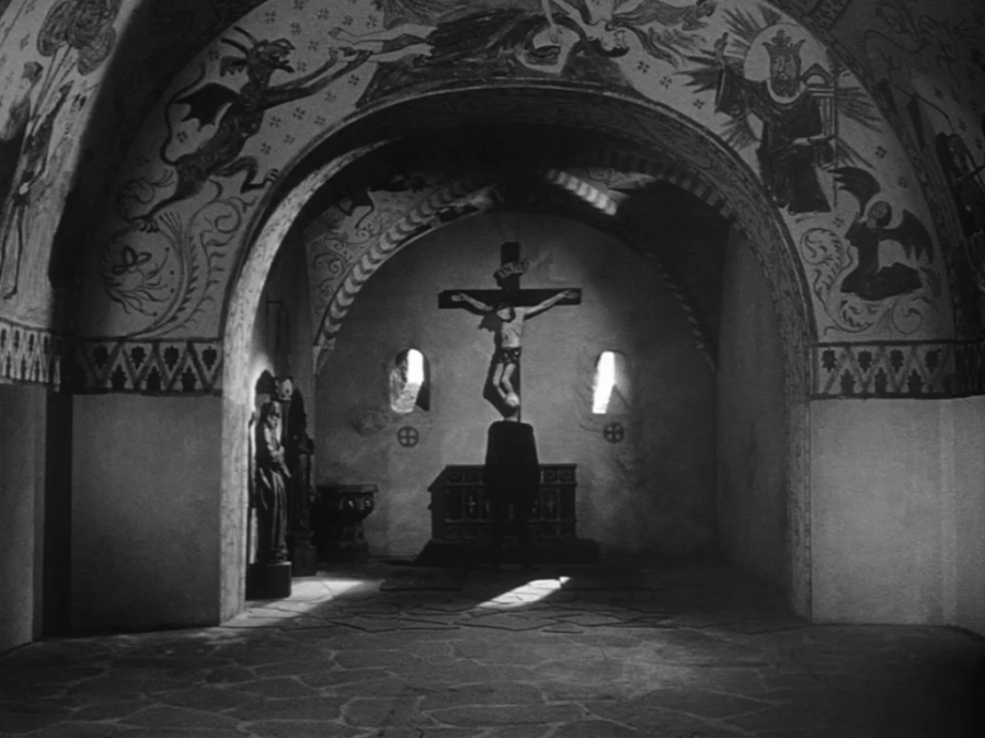 Max von Sydow had appeared in films before, but this was his first movie collaboration of nine with Ingmar Bergman. Von Sydow would go on to play other characters reminiscent of Block, such as Jonas in Winter Light and Jan in Shame. Unlike Jonas and Jan, Block can still access an important element of his own humanity: he can feel pleasure. In one scene, he eats wild strawberries and drinks fresh milk with new friends. I will try to remember this moment, he says, reveling in the purity of the movie’s single inclusion of joy. But all in all, Antonius Block is more like them than not, for he is defined primarily by his doubt, and furthermore all three live in times where that doubt is a crippling liability. Jonas is terrified of what might happen if a nuclear China decides to use its weapons; Jan frets and fears his way through the opening stages of the invasion of his country by a hostile foreign power. Block is returning home from his own hostile invasion to find that a terrific disease is obliterating his countrymen. (This is a good enough movie that one leaves aside the temporal miscalculations.) A monk (Anders Ek) with a hostile message and an even worse penchant for calling out individual sinners does have a salient point: you all might die before the sun rises tomorrow, and then where will you be. It’s that second part which tortures Block, who admits to Death that his flesh is fearful but that he, separately, is not afraid. It turns out that Death is pretty tight-lipped about a pair of personages one would expect him to know about in God and Satan or, worse, he himself doesn’t know if they’re real. Block cannot bring himself to trust in God. He calls it humiliating that he still believes in God, laments that he must go on the words of other people rather than having the knowledge of God that he can have in tangible things. When the world is collapsing, perhaps even nearing an end, as some patrons of a tavern believe, it is no comfort to simply think God is real.