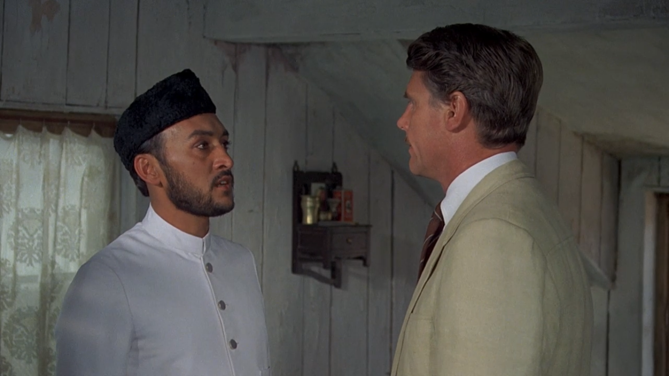 Towards the end of the film, Aziz has dropped his traditional Western clothing for the clothing of men in the future Pakistan. The shalwar kameez is entirely white, and he wears a charcoal Jinnah cap. After being tried for the rape of a white Englishwoman and, miraculously, having gone free, he has given up on everything and everyone English. Fielding, a friend who resigned from the social club in protest when Aziz was arrested, has gone to congratulate Aziz on his freedom; Aziz, however, is certain that Fielding is moving in romantically on the woman who very nearly got him killed, and he rejects him. Later on, after her has moved far away from the scene of his misfortune, he will tear up the letters that Fielding sends him and refuse to answer; he believes that the wife he has taken is Adela, and only when Fielding tracks Aziz down with Godbole’s help does Aziz see that Fielding has not married her. The film’s final scene sees him writing a letter to Adela, thanking her for having done the right thing in the end and complimenting her courage. It’s all far less grating than one expects. Aziz’s fury is entirely justified, and the film does not do much to curtail it. It gives him some time to cool off, makes his reunion with Fielding cool but cordial, and ultimately complicates that letter. He may have become capable of forgiving Adela—understandably, I think, for the film has spent its entire length depicting a gentle man—but Adela has not necessarily learned to forgive herself. We watch her read this letter, and Davis performs the scene silently and sadly. It is raining outside. She gets up, looks outside, paces a little bit. The movie, in other words, has grounds to allow a viewer the leeway to forgive her or otherwise. It hardly reverses the orientalism within the film or scrubs the makeup off Alec Guinness, but this is not a one-sided plea for a reductive vision of 1920s India. The movie is summed up when Fielding sings “The Sun Whose Rays Are All Ablaze” to himself as he gets dressed. Either it’s a brilliant comment on sympathetic white Englishman who are still wrapped up in the supposed mystique of the East, or it’s one of those “Gilbert and Sullivan are the most English thing in the world” characterizations. My head thinks the latter; my heart says he didn’t sing “My Name is John Wellington Wells.”