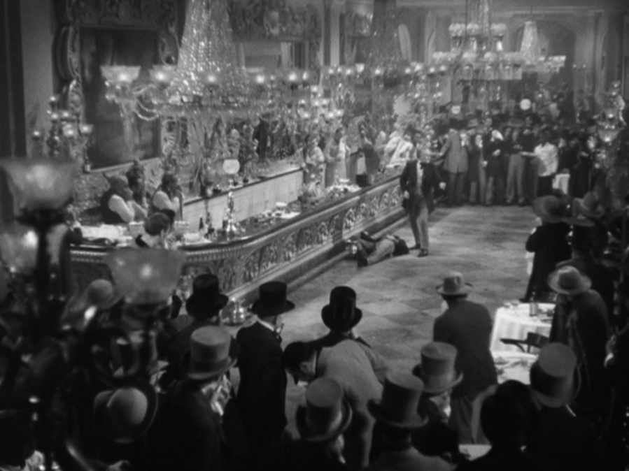Isn’t one of you drunk enough to have some courage to help me move him? Livingstone cries, but it’s no use. None of the swells in the bar are willing to risk their life an inch further than they must, and even Pres Dillard’s illness does not move them. Southern manhood, Wyler says, has its chivalric limits. These men are glad to put themselves in the line of fire when they have a gun for themselves; the animal instinct not to stick one’s neck out too far when there is no self-defense puts dents in the armor of that white knight.
