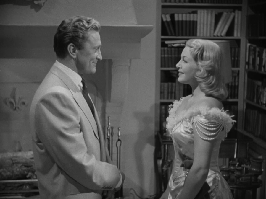 In contrast, there’s nothing particularly subtle or quiet about the way Jonathan Shields does his business. His “legend,” according to Bartlow, is that he will “do anything to get what he wants.” He finds out what people want, gives them an opportunity to have it, and then retracts that opportunity when it no longer suits him. The Shields model of coercion is always to have the first turn, even if that means he must begin playing the game before his mark realizes that the Douglas plays Shields with such amiability and energy—in many ways this feels like the Kirk Douglas role—and in Amiel’s story, the first of the bunch, one almost forgets that Shields must betray him at some point. In alternating lines of dialogue they throw out ideas which will make their B-movie with catmen actually frightening. (The Bad and the Beautiful is not shy about teasing out its recent past. It’s not exactly roman à clef territory for David O. Selznick, partly because it throws in bits like this parody of the Val Lewton-Jacques Tourneur joint Cat People. Mostly I was tickled by Bartlow, who was like a dollar store Faulkner with some well-placed tragedy to go alongside him.) It certainly looks like the two men have made a partnership for themselves, with Shields the Pressburger to Amiel’s Powell. But what Amiel doesn’t realize as he opens his heart to Shields is that Shields can count exactly how many dollars he can squeeze from that heart. Amiel has a screenplay in his back pocket for a book that no one has been able to successfully turn into a film, one that he dreams of making a deeply personal movie. Shields and Amiel agree to take the screenplay to Pebbel, demand to be given the chance, and go from there; what Amiel doesn’t know is that Shields has already got a director in mind, and that director is not Fred Amiel. Rather like the great Deborah Dress Debacle which fills us with pity for poor overmatched Jeanne Crain, this first moment of coercion is the most effective one the movie has. In both cases (I’m sorry for what you’re about to read), the first cut is the deepest. There’s more red meat in the second subplot of The Bad and the Beautiful, even though if it were a steak I think it would have come out blue. The movie shows us the exact instant that Shields realizes that the way he’ll get the budding star out of Lorrison that he wants in his film is to make her believe he loves her. And so during filming, they have a romance, and her performance comes out exactly as he wants it to. What the movie recognizes about the Shields method of making people do what you want is that having the first turn is no guarantee that one will have the last turn. After filming has been completed, Lorrison seeks out Shields at his home only to find that he has run out on her as soon as got the chance. A younger starlet is waiting upstairs, saying the words that will splinter the Shields-Lorrison connection for good: “You’re business. I’m company.”
