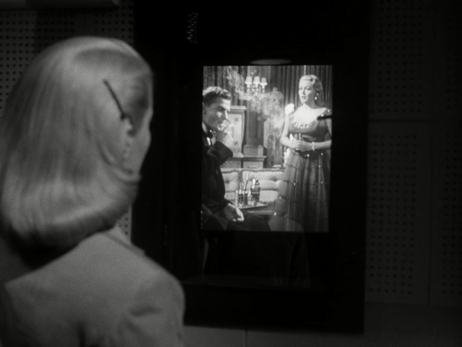 In short, women may make the rules, but it is the men who enforce them with both hands. One hand holds kindness, as they simply see Addie as a lovely woman who happens to go to the same country club and travel in the same circles. The other holds cluelessness, for in Brad and George’s cases particularly they cannot understand why their own wives should be jealous of this goddess down the road. Brad likes a dress that Addie was wearing; he buys it for Deborah. George gets a gift he’ll cherish from Addie; it is placed in stark contrast with the empty romance programs Rita writes. Porter keeps a framed portrait of Addie on his piano; Lora Mae knows, as she cozies up to Porter on their first dates, that she may never rate that highly. Addie sets the tone almost innocently, and the other housewives endeavor—and of course fail—to measure up to it. Deborah and Lora Mae can’t match Addie’s perfect social background. Rita, probably the most interesting character in the film (or maybe Sothern just acts her part better than everyone else), does not conform to the gender role society has planned for her. As an anthropological document, A Letter to Three Wives proves that teachers’ status and their pay are much the same then as they are now; George would live in relative penury with his wife and twins if Rita weren’t bringing in an income more sizable than his own. The intimation is that Rita and her career are an obstacle to her family’s happiness (meaning George’s), and that her inability to sway her husband to a more profitable line of work is a defect that Addie Ross certainly doesn’t have. Across three stories which could each function as their own film if given the time, Addie is a whispering inadequacy. After all, not one of the women to whom the letter is addressed says to herself, “Well, it certainly isn’t my husband!” Each one is half-convinced that her husband won’t be home when she gets back. There’s such a masterful touch here: A Letter to Three Wives emphasizes that the true coercive power herding these hausfraus is fear, and that fear sounds suspiciously like Celeste Holm murmuring, “Get in line or lose your man.”