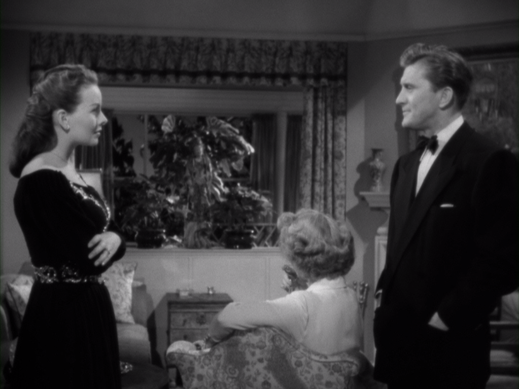 A Letter to Three Wives has a better setup because it is miles more subtle. Three nice housewives in a nice community go out one morning for a charity function on a boat; just before they embarked, they read a letter addressed to them stating that its writer, Addie Ross, has run off with one of their husbands. Addie declines to say whose husband she’s taken. Jonathan Shields is the engine of The Bad and the Beautiful. Addie Ross, voiced by an unseen Celeste Holm, is an invisible hand. According to the men of this town, Addie is probably the most perfect woman around, Jackie Kennedy while she was still Jacqueline Bouvier of George Washington University. As it happens in The Bad and the Beautiful, the river scales back into three tributaries. Deborah Bishop (Crain), now the wife of one of the burg’s leading men despite her humble rural origins, remembers her first appearance at the country club. Rita Phipps (Sothern), a radio writer who is outearning her teacher husband, George (Kirk Douglas again), is brought back to an ill-fated dinner party. Lora Mae Hollingsway (Darnell), who is born poor, flashes back to her entire courtship with her now-husband, successful entrepreneur Porter (Paul Douglas); it is the only one of the flashbacks which takes place across the space of more than one day. Because of its scope, the Lora Mae sequence is something of a letdown. Deborah’s awful dress and Rita’s corporate sellout can all happen in a single day, and their effects are more powerful because of their concentration. Lora Mae’s courtship of Porter, the hunt of the older and richer by the younger and poorer, is by the book; even the revelation that the two of them really love each other is by the book.