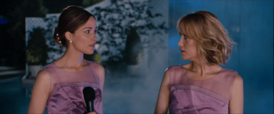 What makes Bridesmaids work several years down the line, and what I expect will make it stand the test of time for at least a couple decades, is its keen eye on the Recession. Annie (Wiig) is one of the only characters in the film who has been truly blindsided by the economy, but that serves to show just how far she’s fallen. Ted (Jon Hamm) has a big house and drives a Porsche; Lillian (Rudolph), Becca (Ellie Kemper), and Helen (Byrne) either work at or have married into a secure workplace; Rita (Wendi McLendon-Covey) may complain about her insane boy children, but it looks as if her family is financially secure enough to allow her to stay home with them; even Megan (Melissa McCarthy), who would be the Bull Goose Loony if Annie didn’t show up, is working an extremely lucrative government job. It’s not simply that Annie has crashed out of the sky after losing a successful bakery where she did what she loved, presumably. It’s that everyone else around her seems to have been, at the very least, to be able to tread water. It’s at least as much a reason for her Helen animus as the sense that Helen is stealing her best friend, which is laid bare for us to see. It’s also what makes her the odd woman out when everyone else wants to go to Vegas and can pony up for the flight, or when everyone looks at bridesmaids’ dresses which are way outside of Annie’s budget. Annie clearly relies on Lillian to validate her in this group, and the slightest hesitation to do so is the latest nick in her death of a thousand paper cuts.